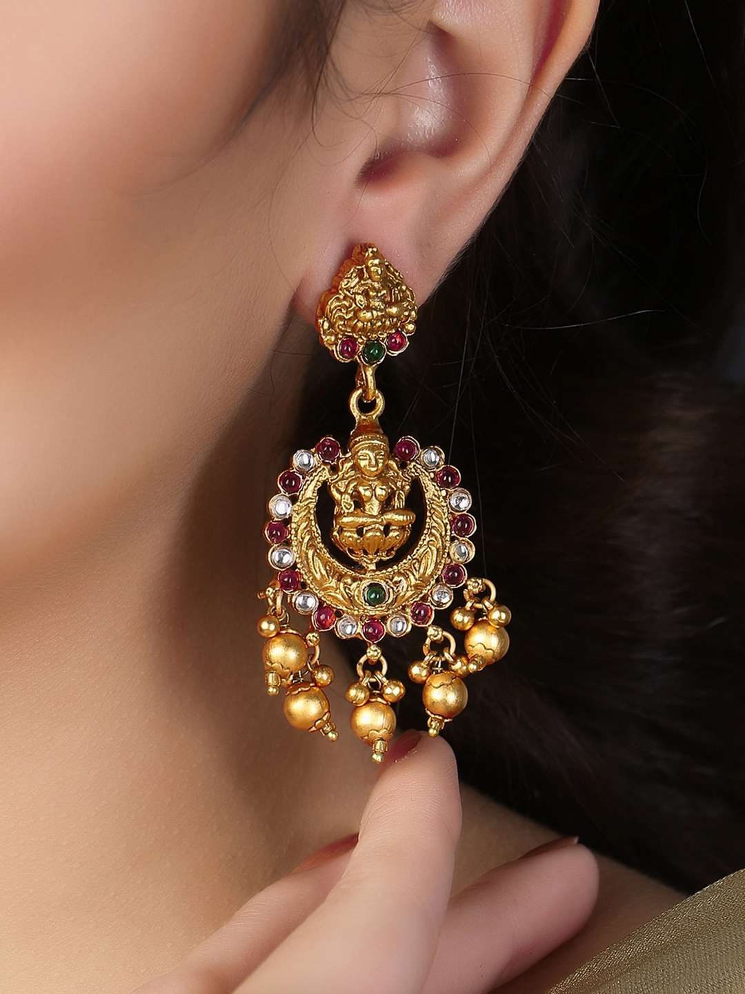 Women 24CT Gold-Plated Handcrafted Multi Stone-Studded ,Gold-Plated,our Gold plating is long lasting and non allergic to skin,and has artificial stones,Secured with a Post back closure.