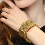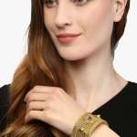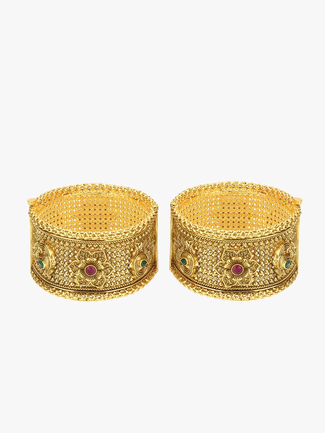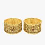 Set of Two 24CT gold-plated Stone-studded handcrafted bangles, each has an intricate textured pattern,our gold plating is long lasting and non allergic to skin.
