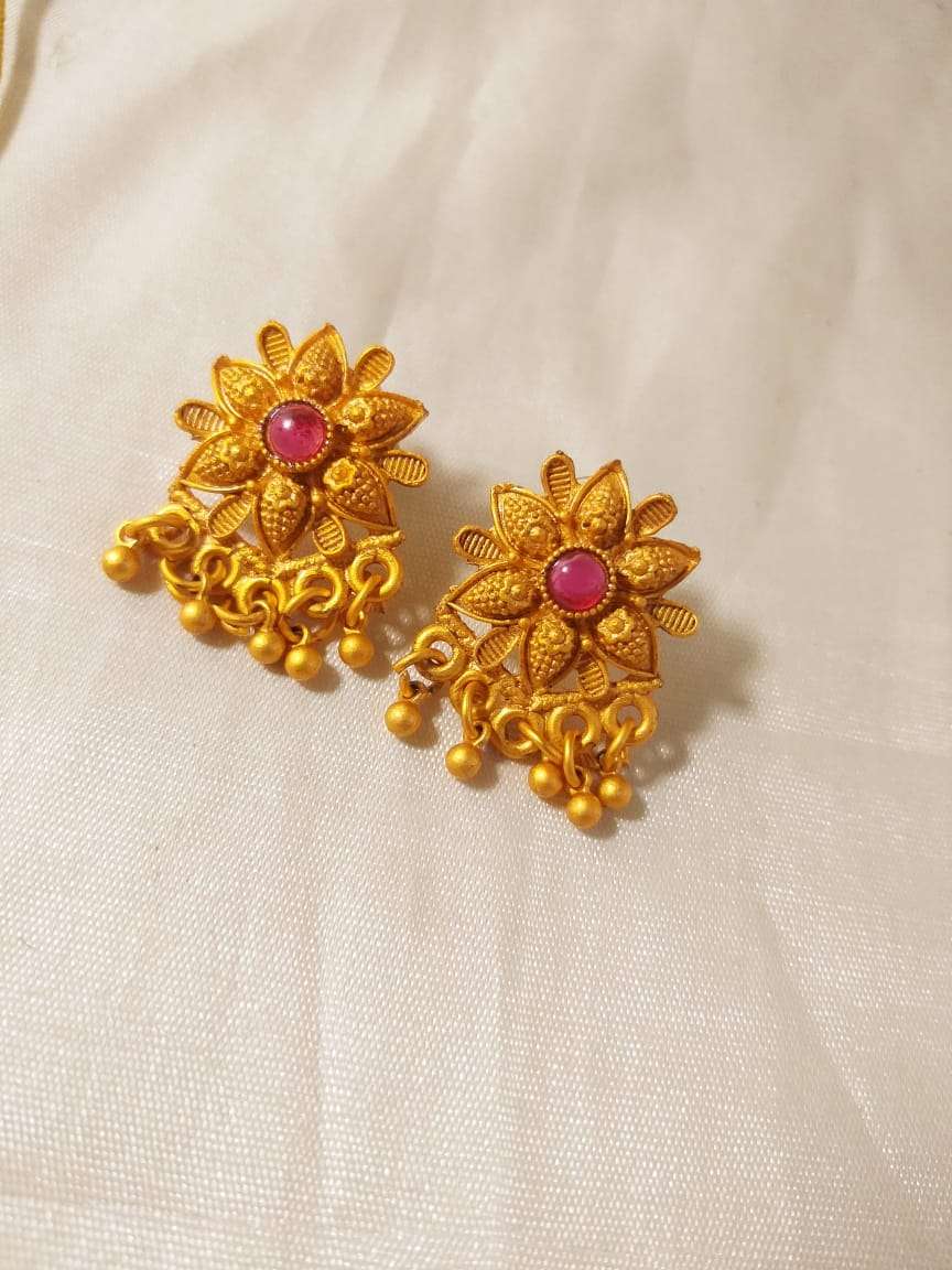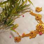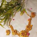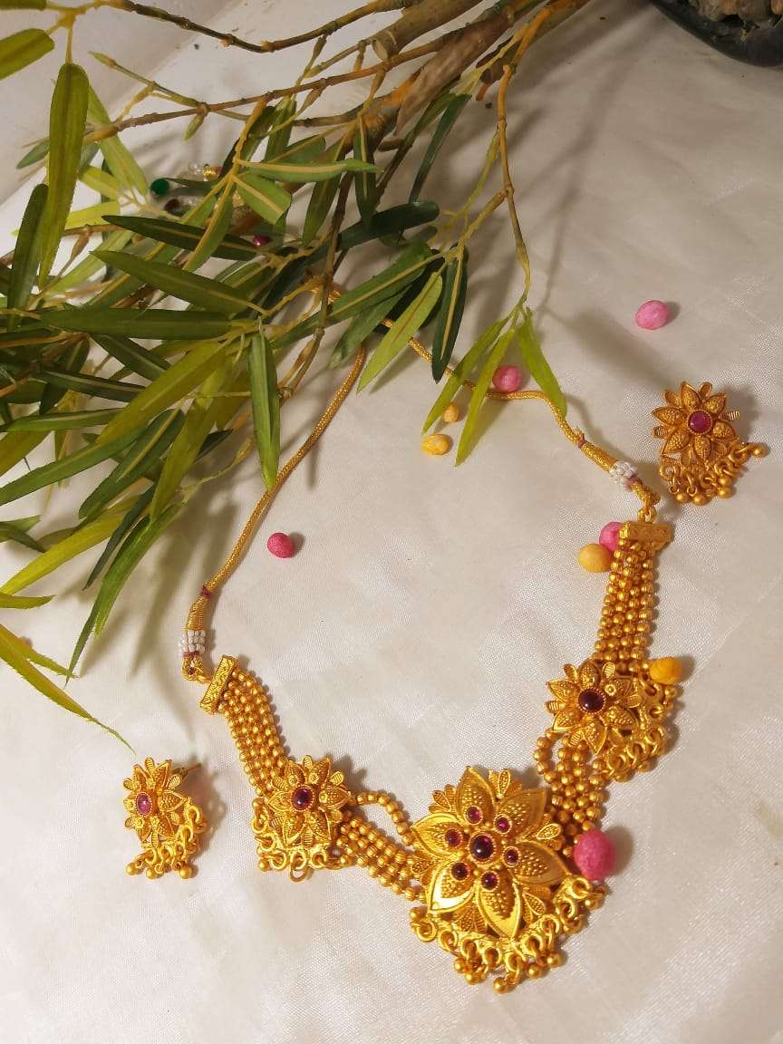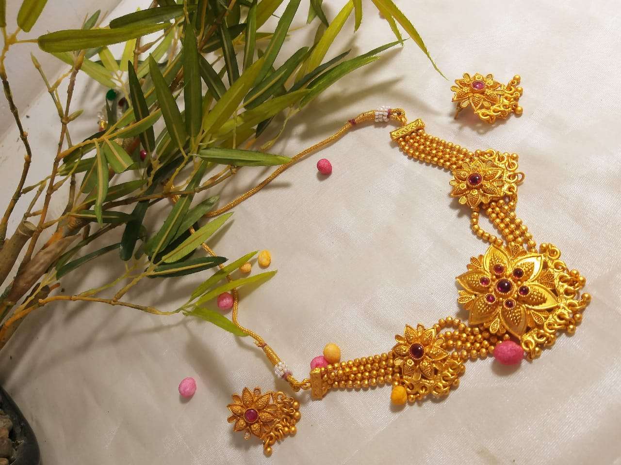 Gold Plated Beaded Chain Royal Choker Necklace with Earrings