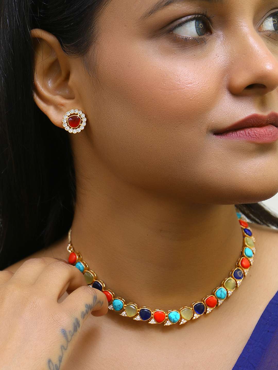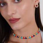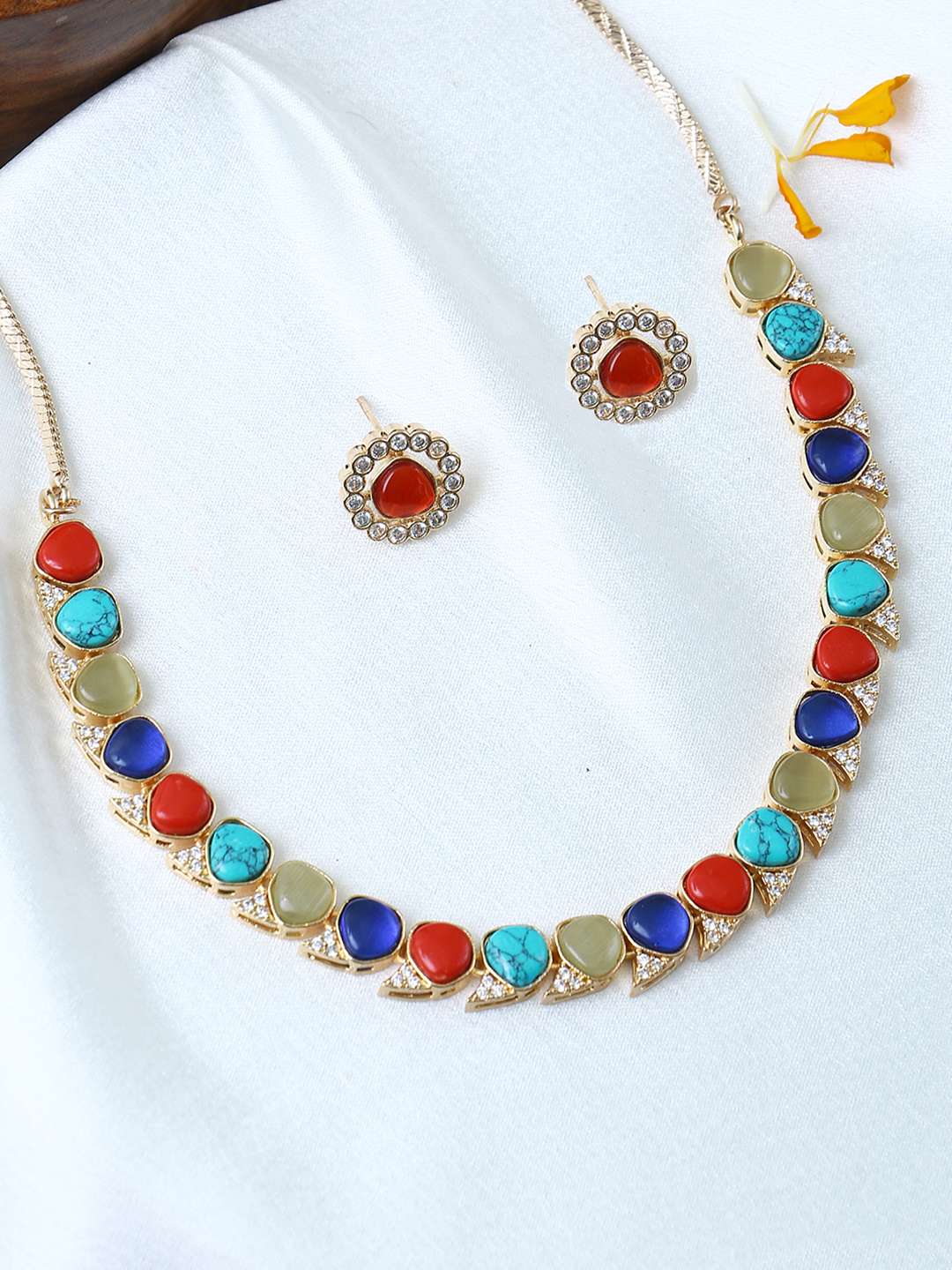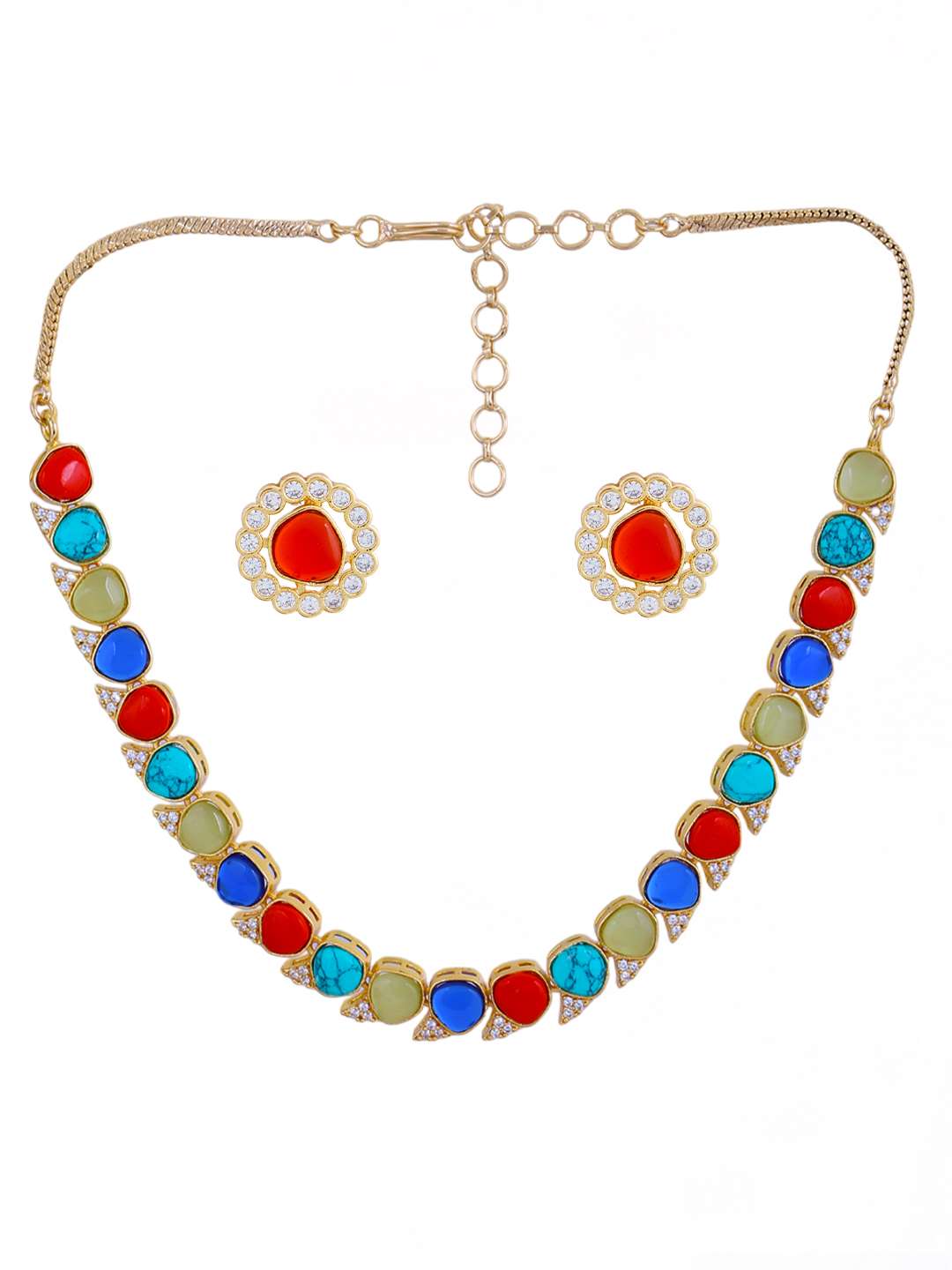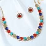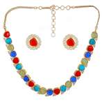 Women Gold Plated Beaded necklace Set with Studs Earrings have Drawstring Closure, A pair of matching embellished Studs earrings, secured with post and back closure, Note: Gold-Plating is long lasting and non allergic to skin