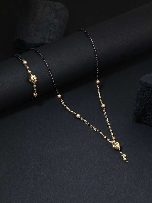Gold-plated black beaded mangalsutra, has beaded droplet hanging detail, secured with S-hook closure.