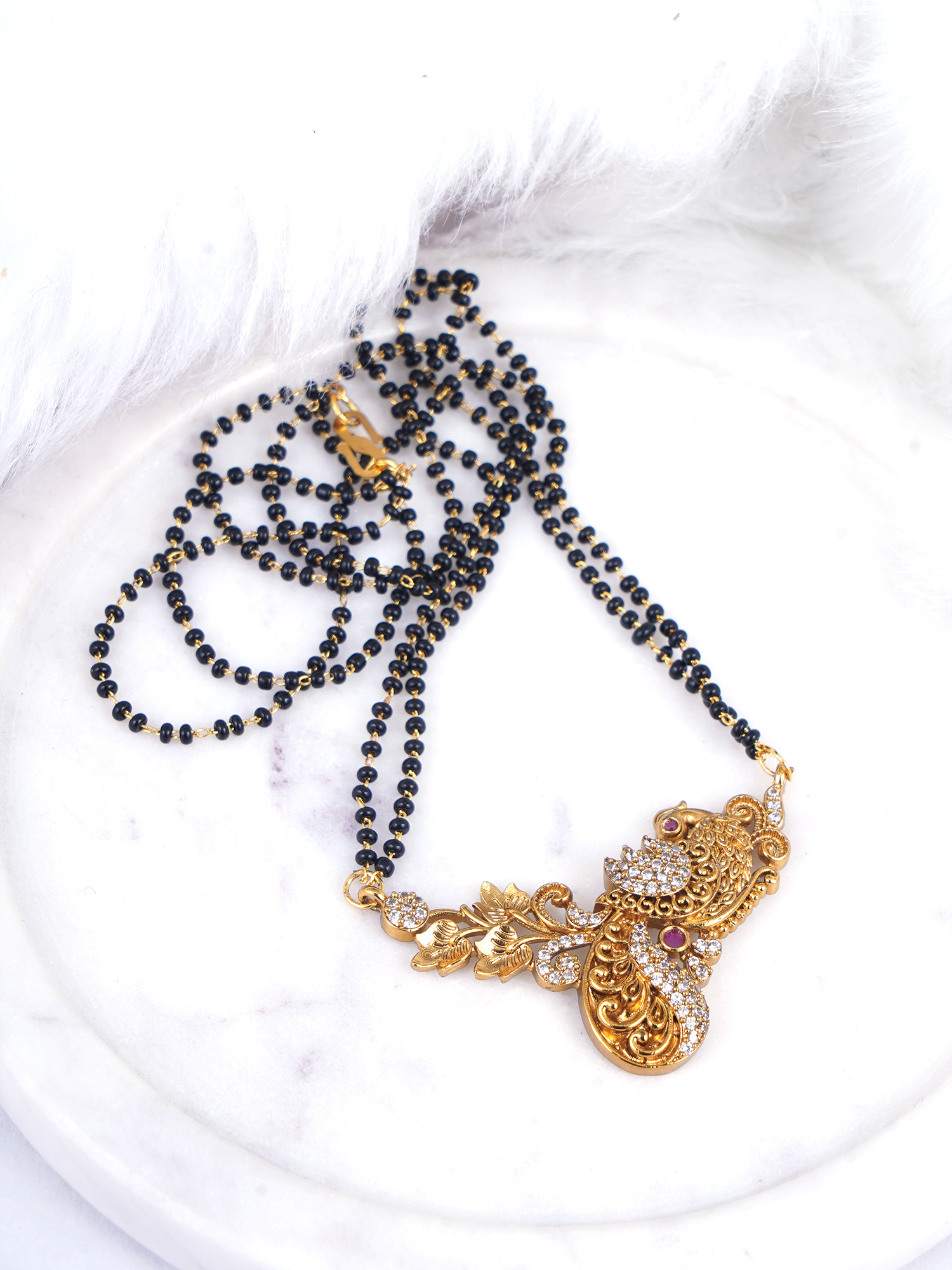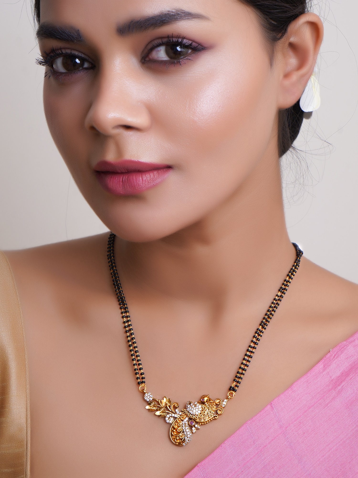 Elegant Design: Features a beautifully curved pendant adorned with sparkling American diamonds (AD), adding a touch of glamour.