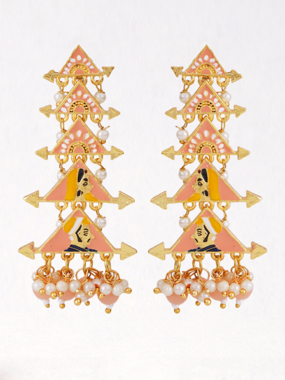 Gold Plated Classic Meenakari Pearl Dangler Earrings