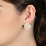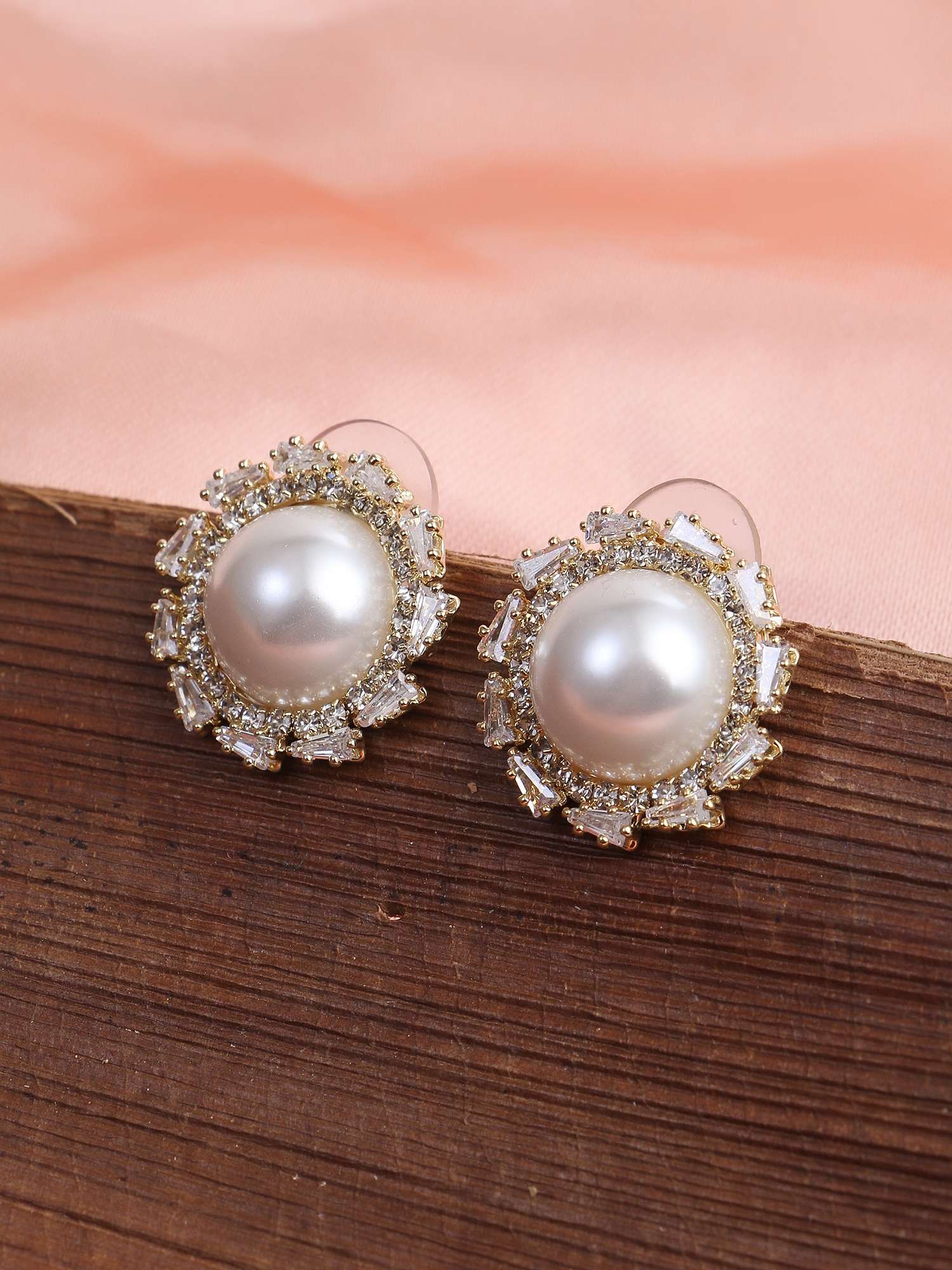 Gold-toned contemporary studs, gold-plated, has pearl and texture