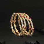 Set of Four 24CT gold-plated Stone-studded handcrafted bangles, each has an intricate textured pattern,our gold plating is long lasting and non allergic to skin.
