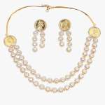 The Gold Plated CZ Studded Queen Victoria Coin Necklace Set is a stunning blend of vintage charm and modern elegance. Featuring a beautifully crafted coin pendant inspired by Queen Victoria, this set is embellished with sparkling cubic zirconia (CZ) for a luxurious touch. The gold plating enhances its opulent appeal, making it perfect for formal occasions, parties, or everyday wear. This necklace set adds a unique flair to any outfit, combining historical elegance with contemporary style.
