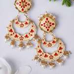 Women Gold Plated Pearl Studded and Tessels Flower Dangler Earrings. Our Gold Plating is long lasting and non-allergic to skin. It Give you a beautiful elegant look with our outfit. We have lauching our new colorful color that matches with all your colorful outfits