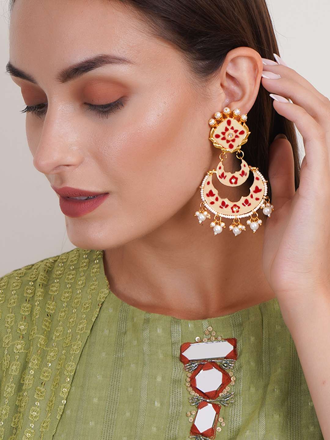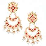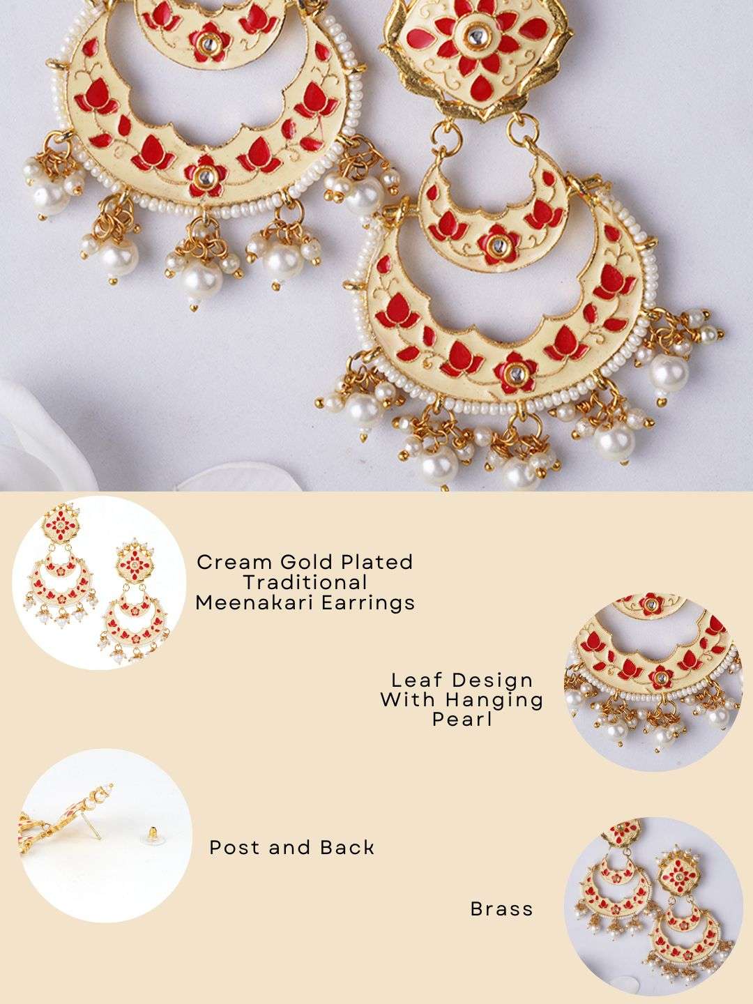 Gold Plated Elegant Meenakari Pearl Dangler Earrings
