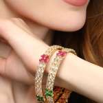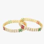 Set of Two 24CT gold-plated CZ Stone-studded handcrafted bangles, each has an intricate textured pattern,our gold plating is long lasting and non allergic to skin.