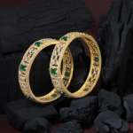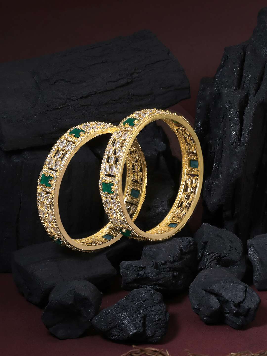 Set of Two 24CT gold-plated CZ Stone-studded handcrafted bangles, each has an intricate textured pattern,our gold plating is long lasting and non allergic to skin.