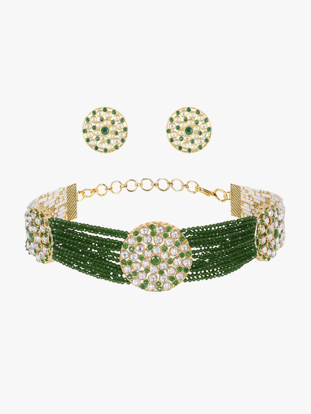 This jewellery set consists of a necklace and a pair of earrings Gold-plated and stranded necklace with Drawstring closure, A pair of matching earrings, secured with a post and back closure, Gold plating is long-lasting and non-allergic to skin