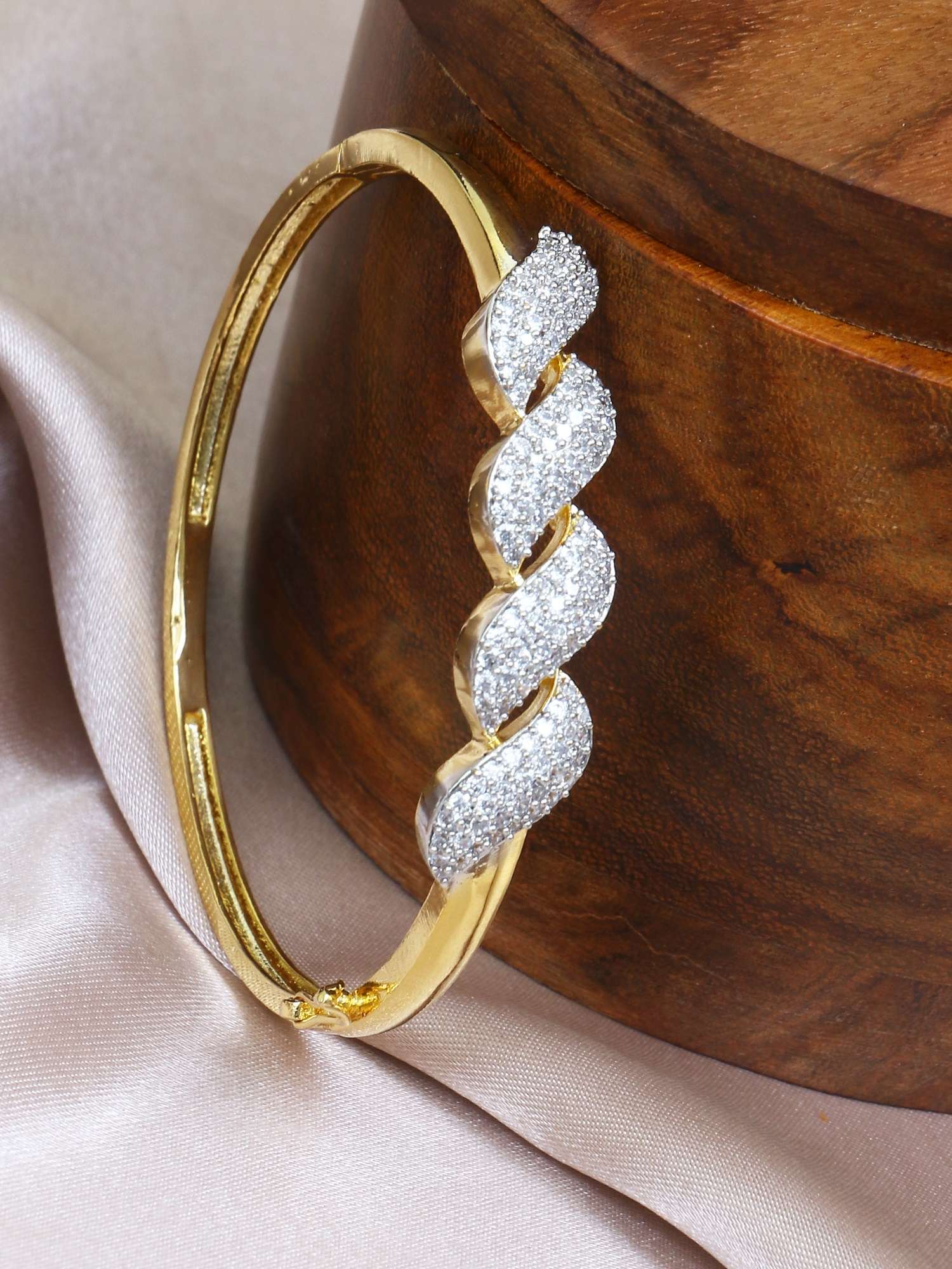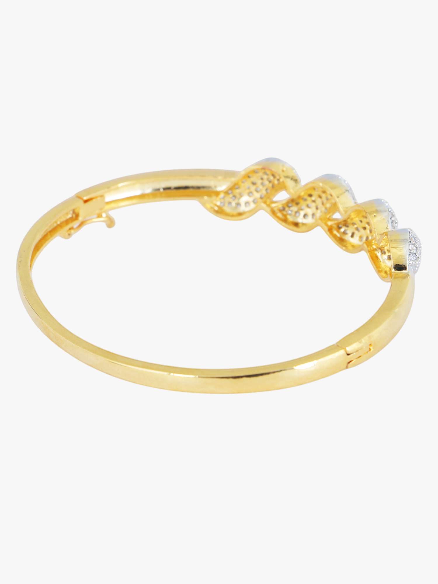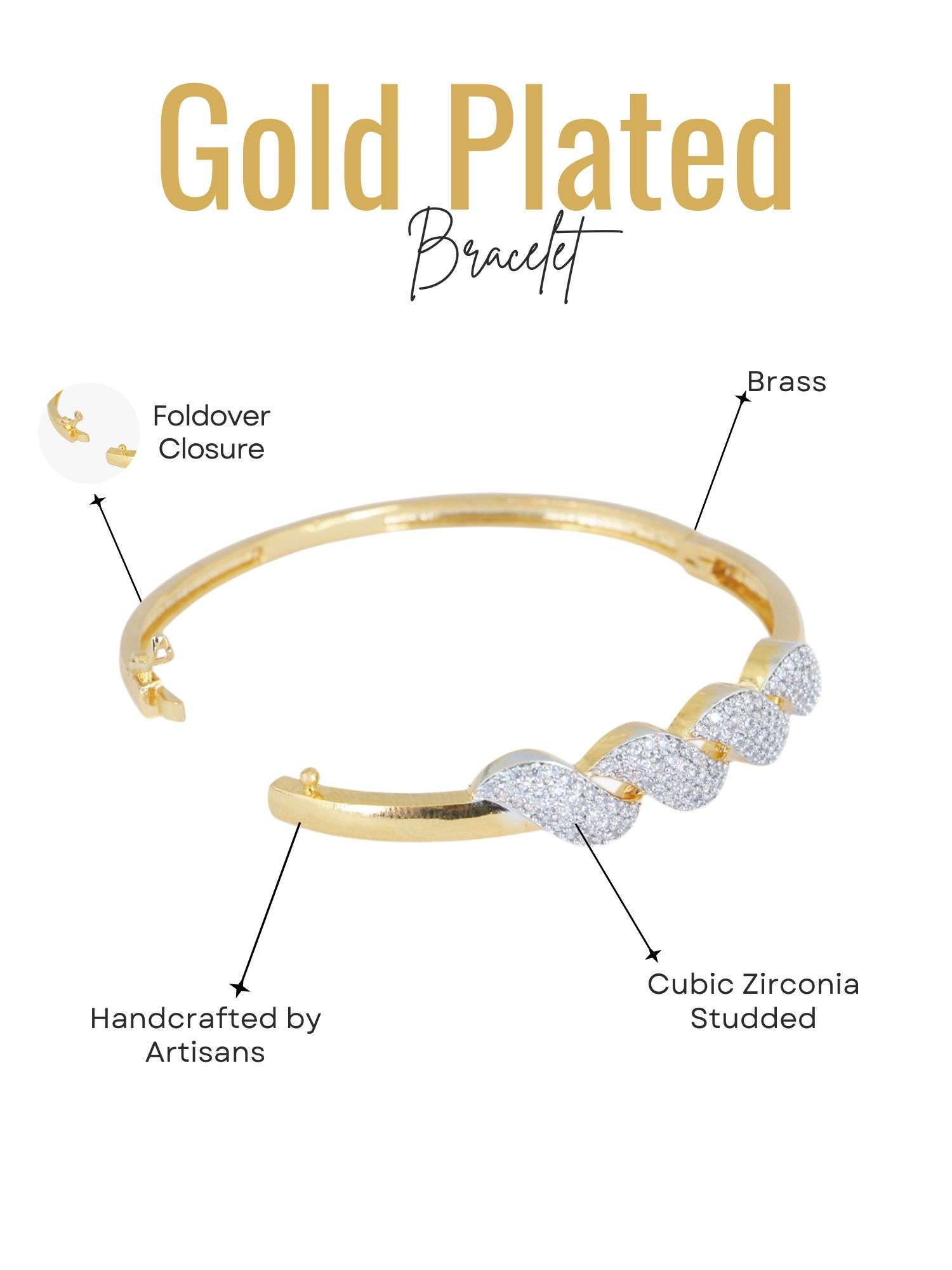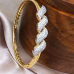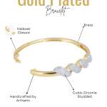 The Gold-Plated Handcrafted CZ Studded Bracelet is a beautifully crafted piece that showcases both artistry and elegance. This bracelet features meticulously placed, sparkling Cubic Zirconia stones, set in a warm, lustrous gold plating that enhances its luxurious appeal. Handcrafted with attention to detail, it offers a unique charm and sophistication, perfect for adding a touch of glamour to any outfit. Durable and timeless, this bracelet is designed for those who appreciate fine craftsmanship and refined style.