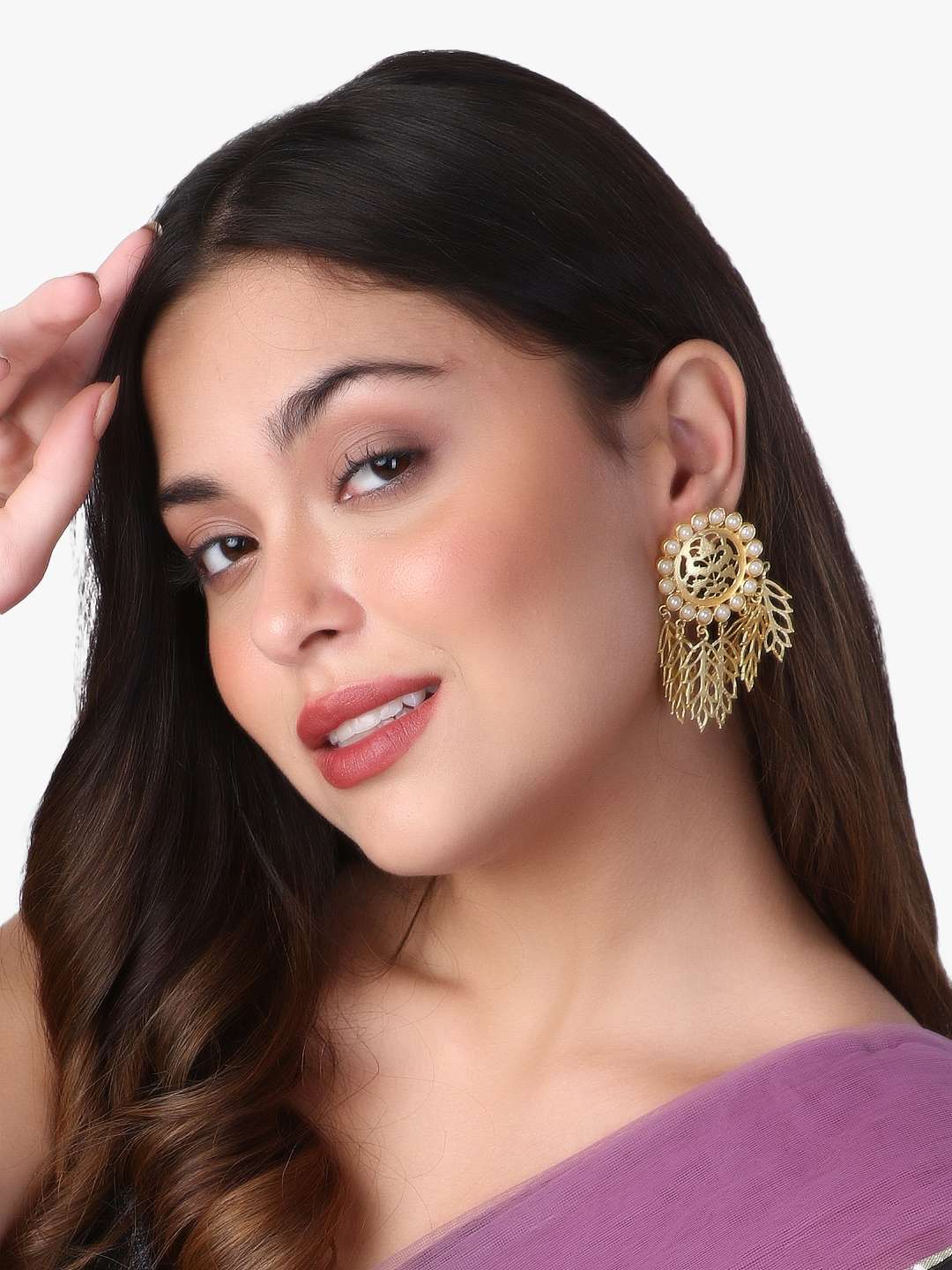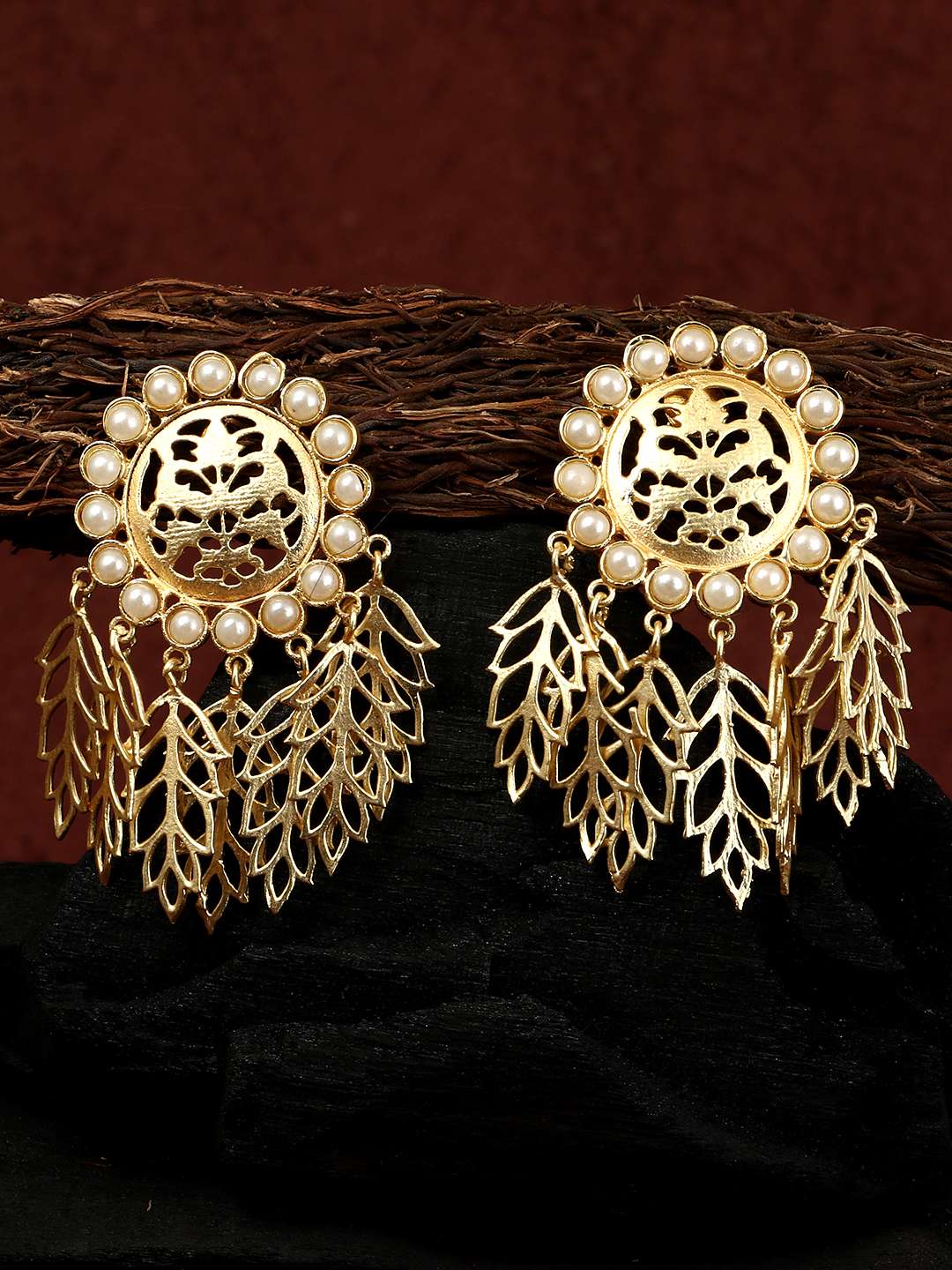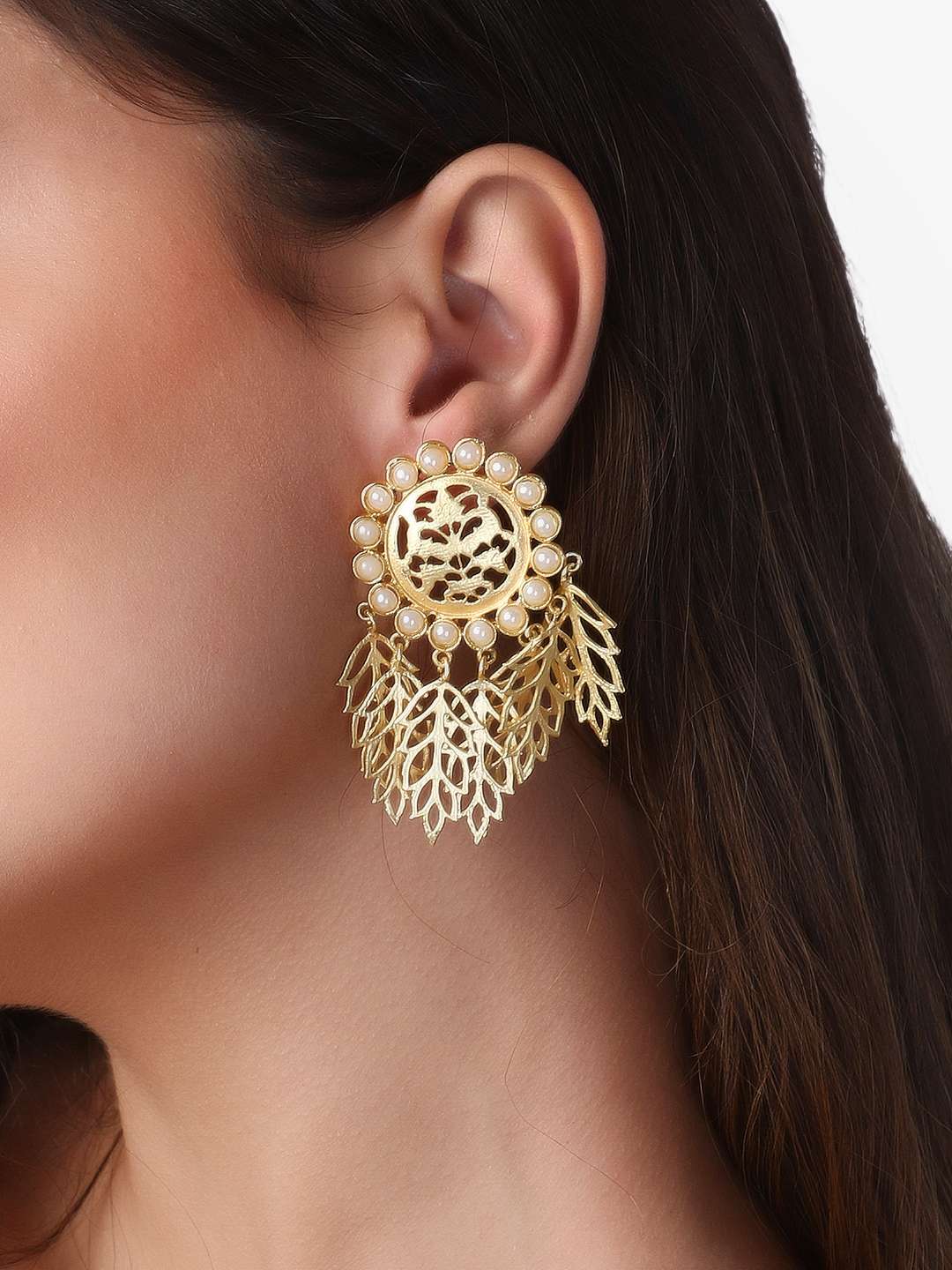 Women 24CT Gold-Plated Handcrafted Leaf Drop Earing ,Gold-Plated,our Gold plating is long lasting and non allergic to skin,and has artificial stones,Secured with a Post back closure.