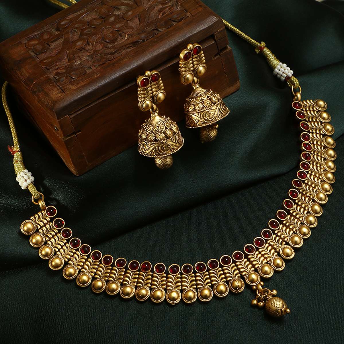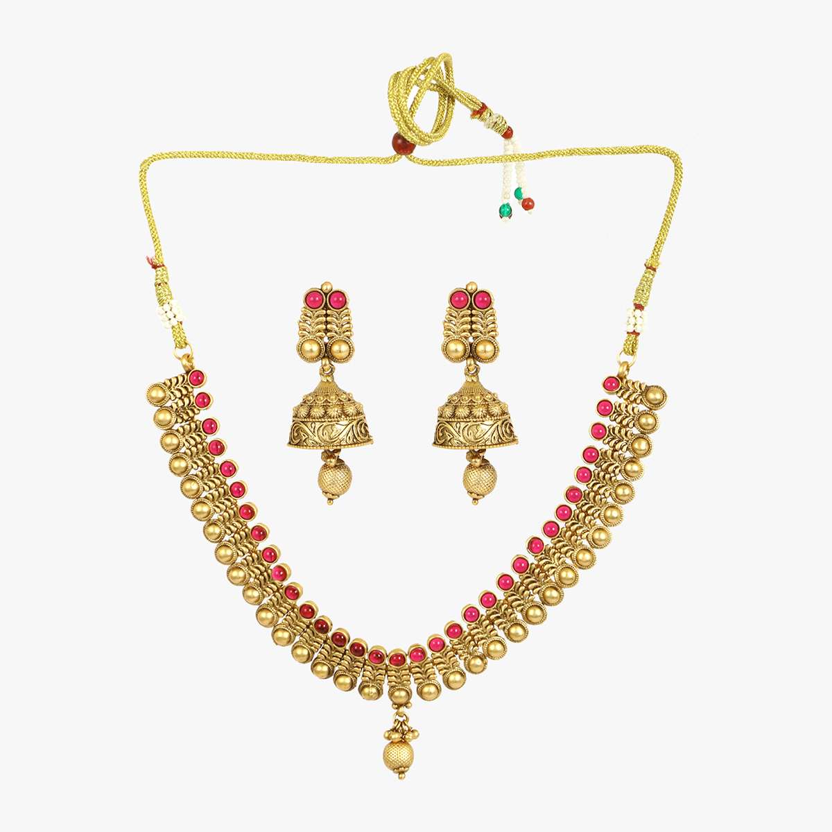 Women Gold Plated Stone Studded Pearl Tessel Traditional Neacklace and Earrings Our Gold Plating is long lasting and non-allergic to skin