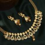 Women Gold Plated Stone Studded Pearl Tessel Traditional Neacklace and Earrings Our Gold Plating is long lasting and non-allergic to skin