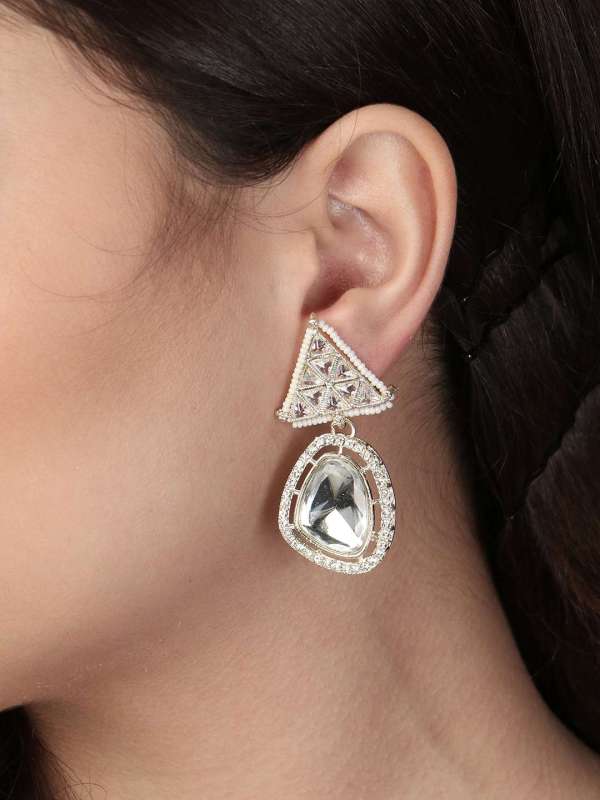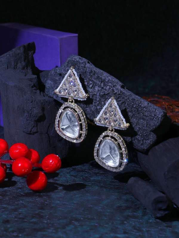 Gold-Plated Kundan-Studed Drop Earrings. Our Gold plating is long lasting and non allergic to skin,and has artificial stones,Secured with a fraction Back closure.