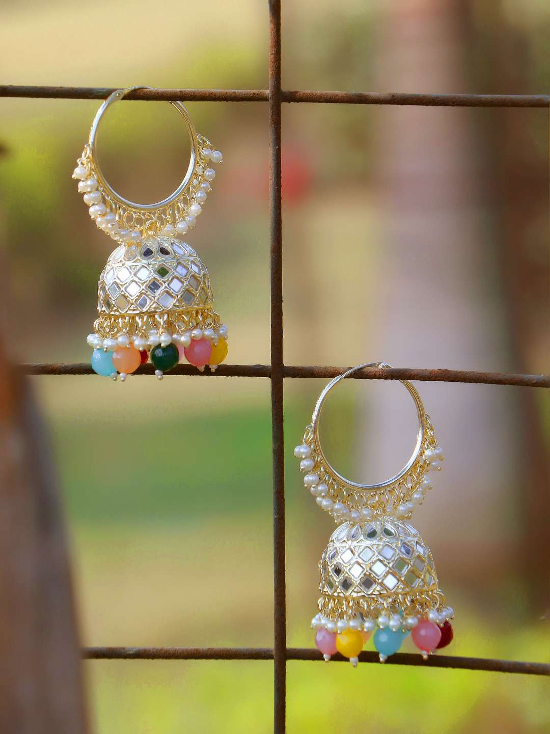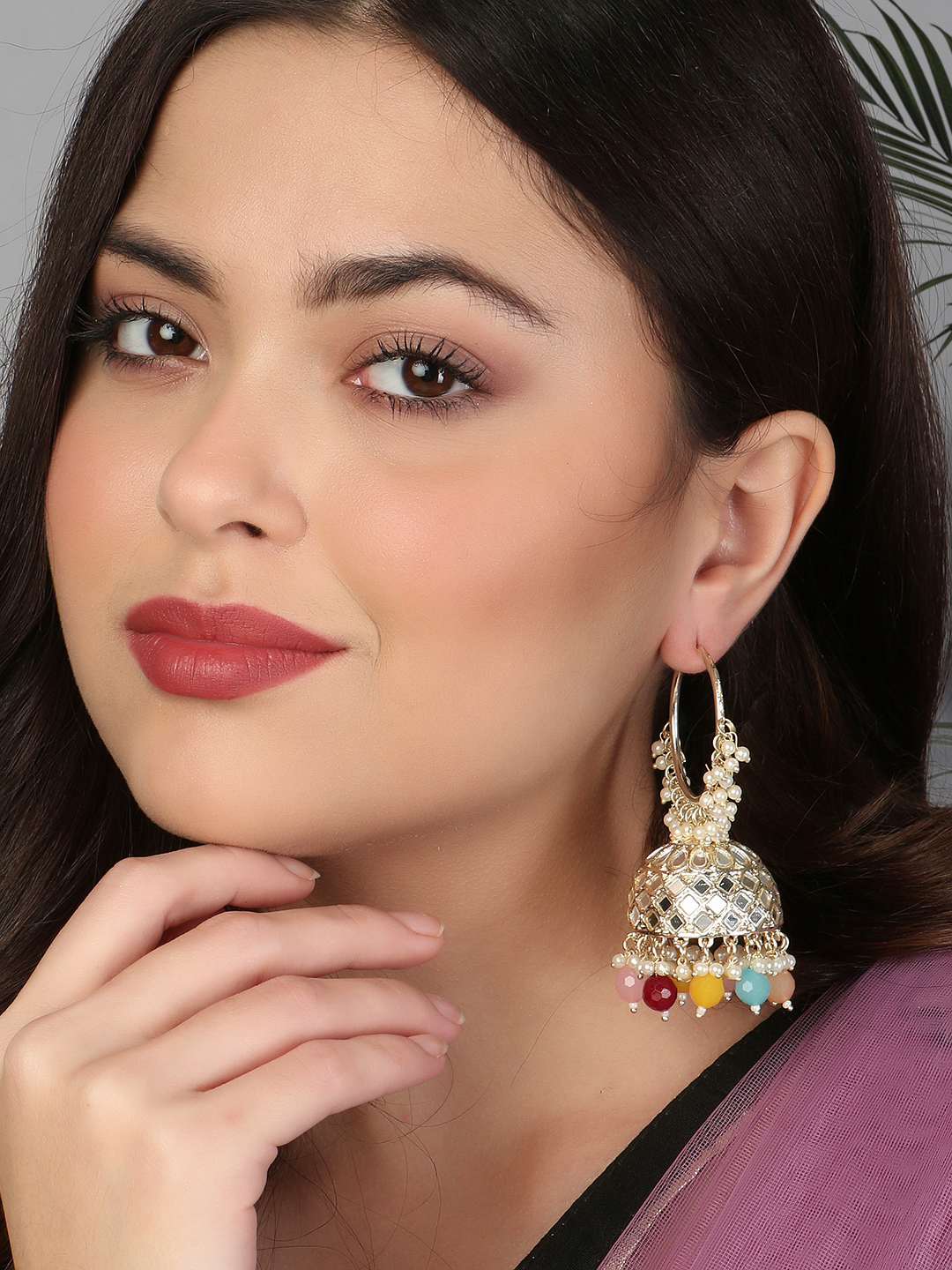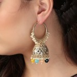 Gold-Plated Kundan-Studed Pearl Tessel Dome Shape Jhumki. Our Gold plating is long lasting and non allergic to skin,and has artificial stones,Secured with a fraction Back closure.