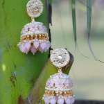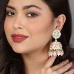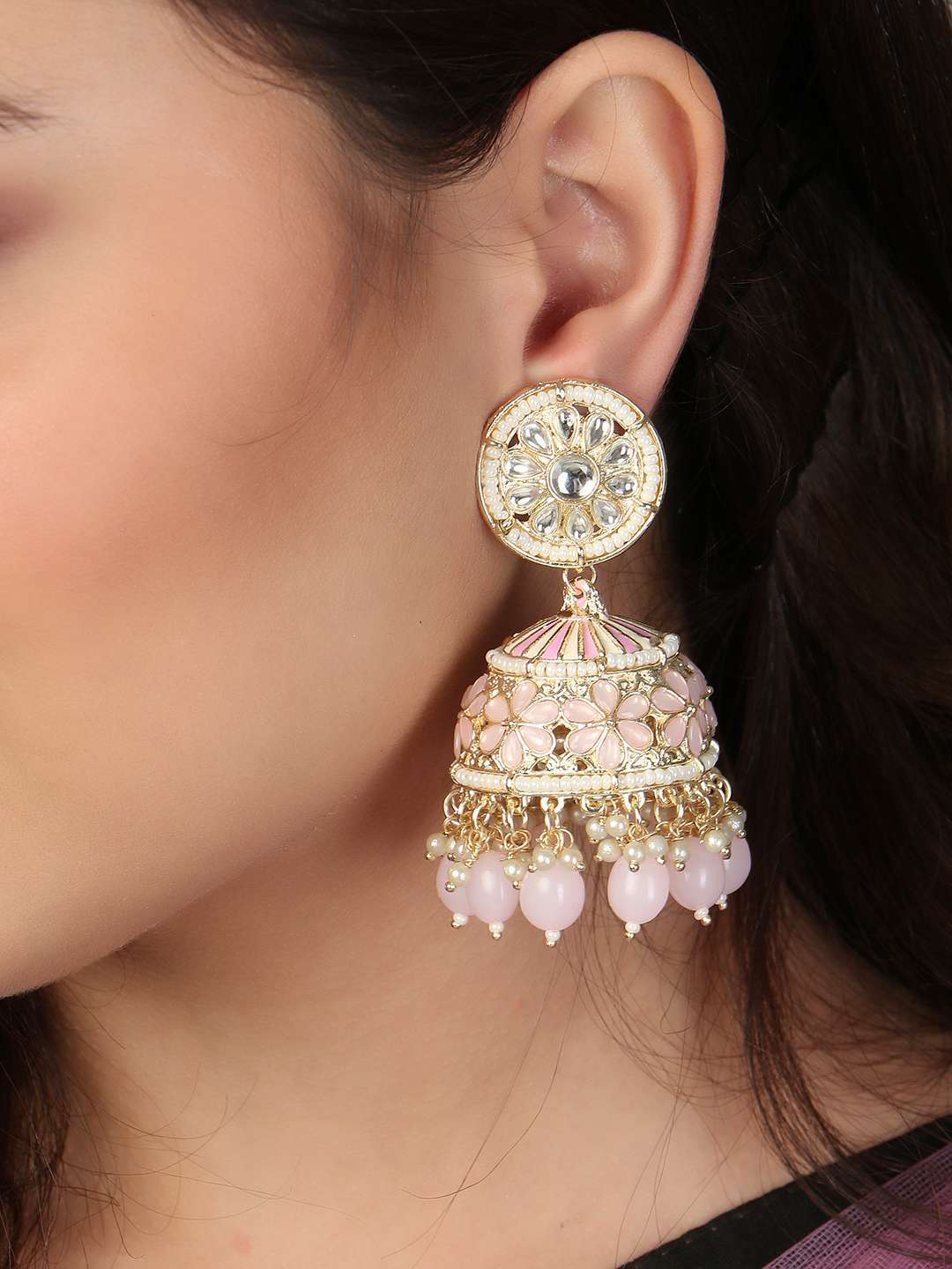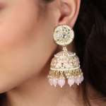 Gold-Plated Kundan-Studed Pearl Tessel Dome Shape Jhumki. Our Gold plating is long lasting and non allergic to skin,and has artificial stones,Secured with a fraction Back closure.