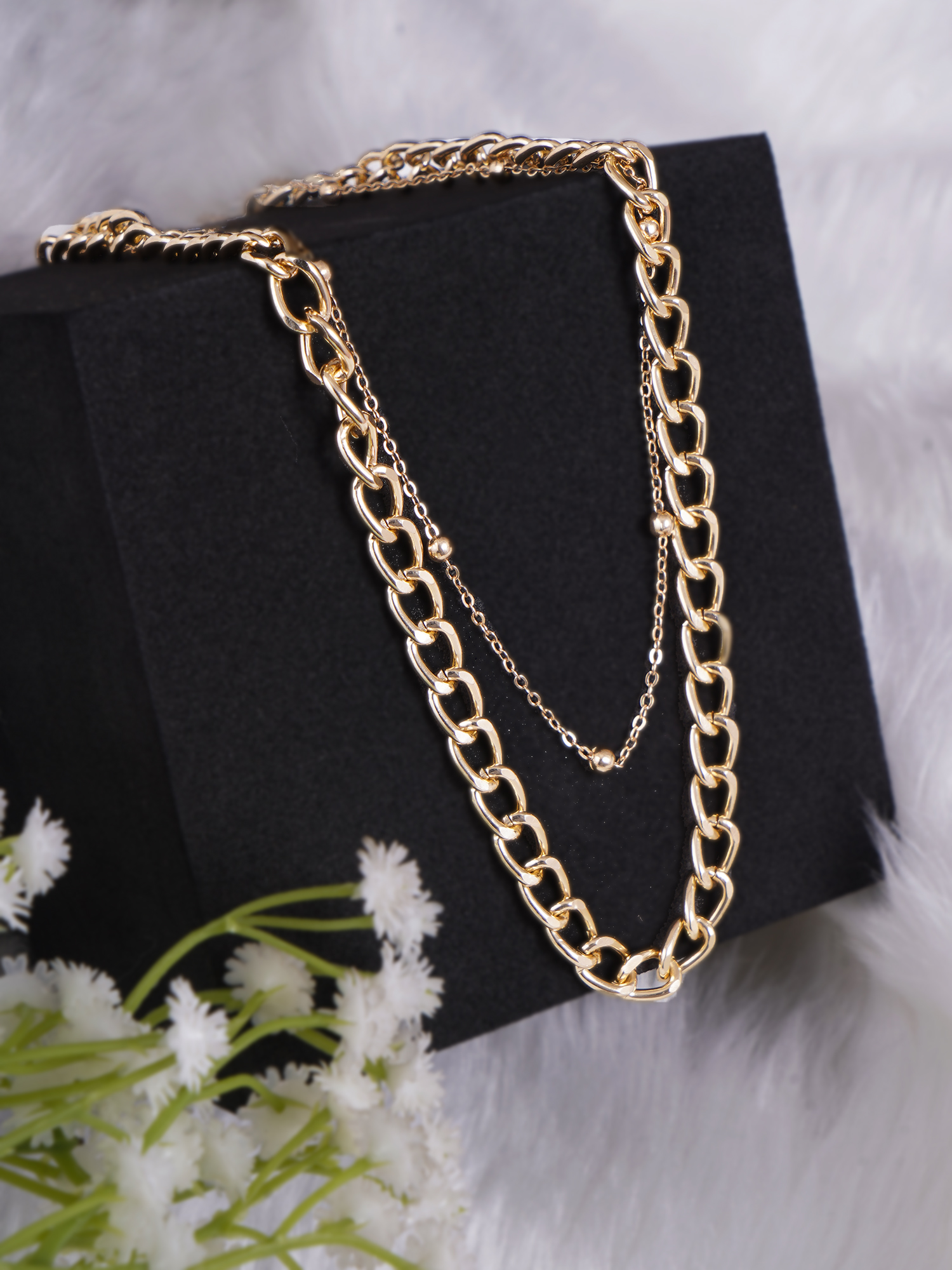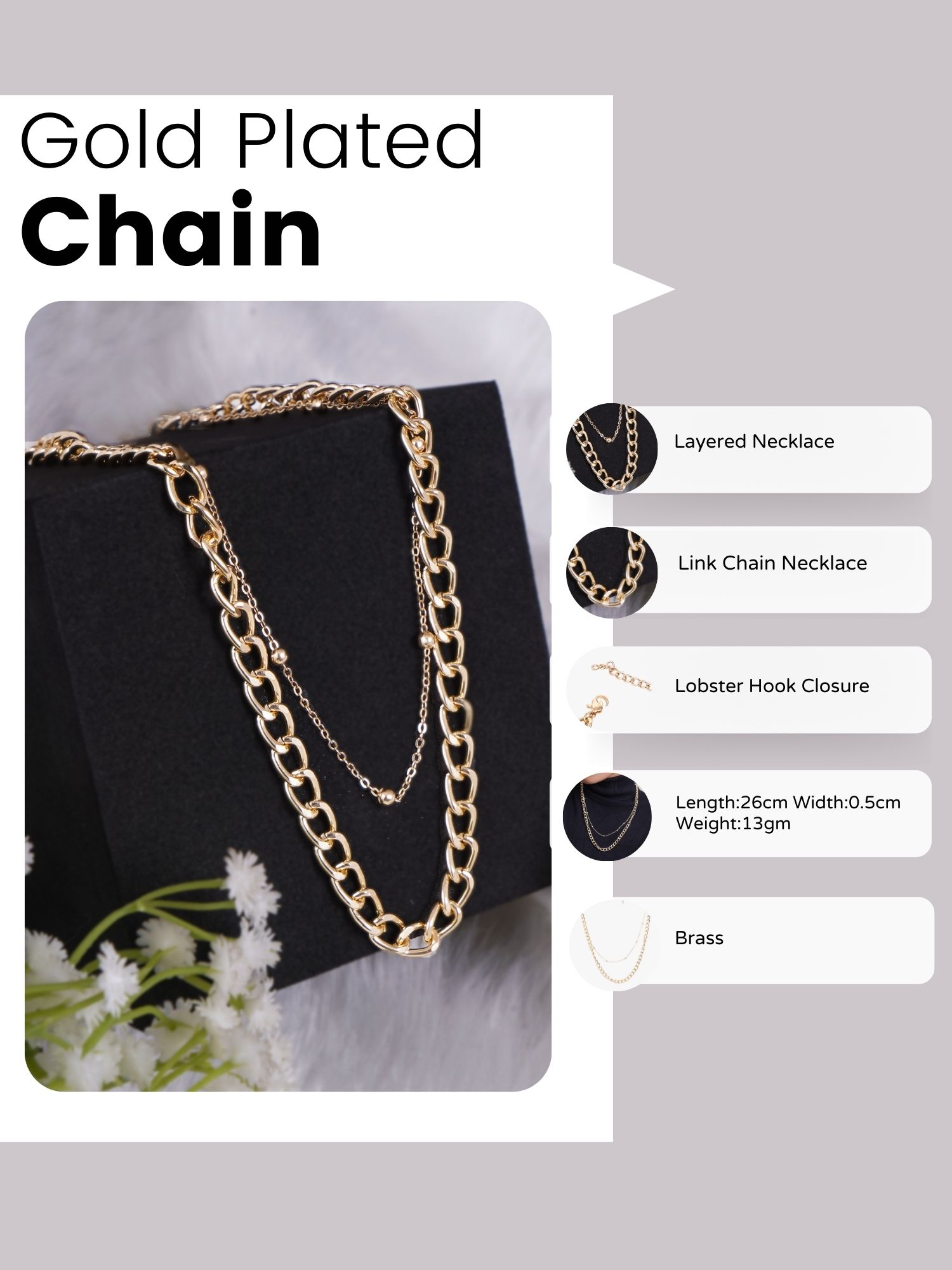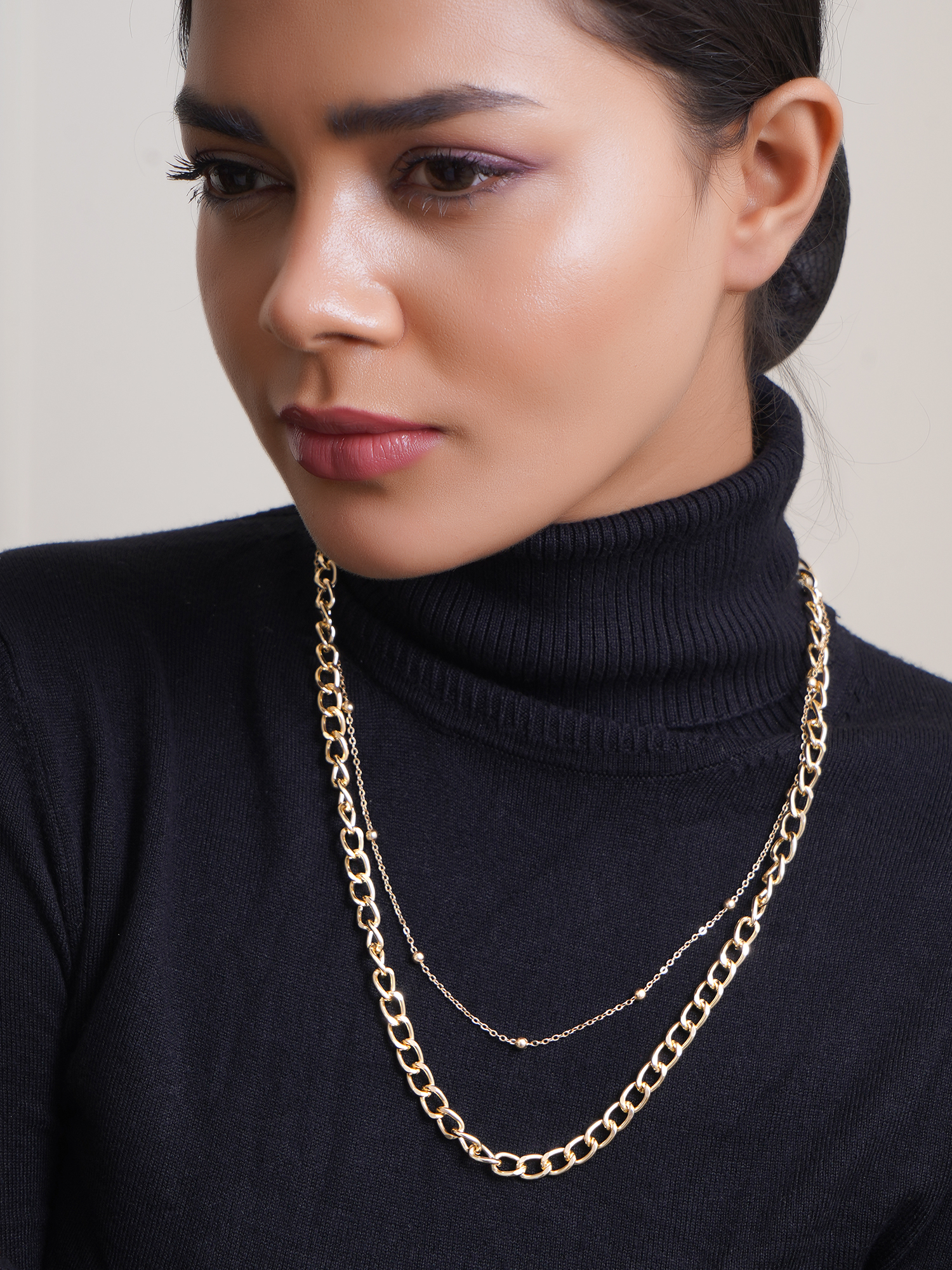 Gold Plated Link Chain Collar Adjustable Layered Neckpiece with Lobstar Closure, Note: Gold-Plating is long lasting and non allergic to skin.