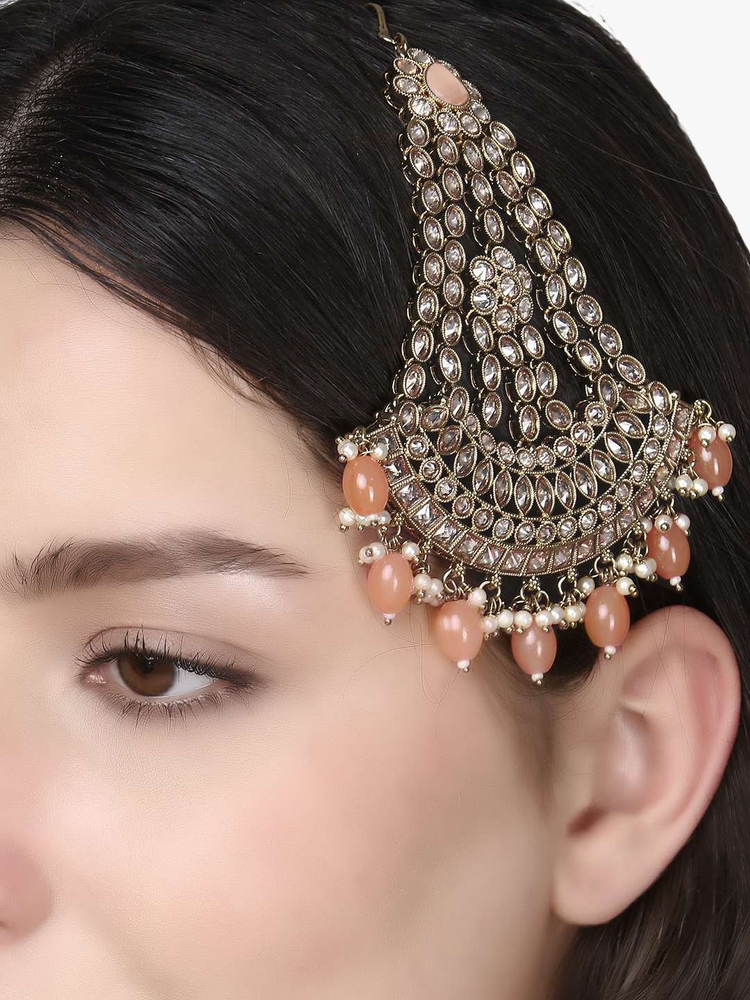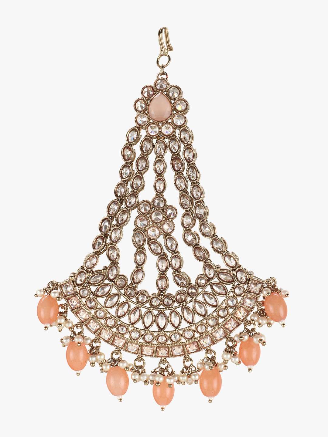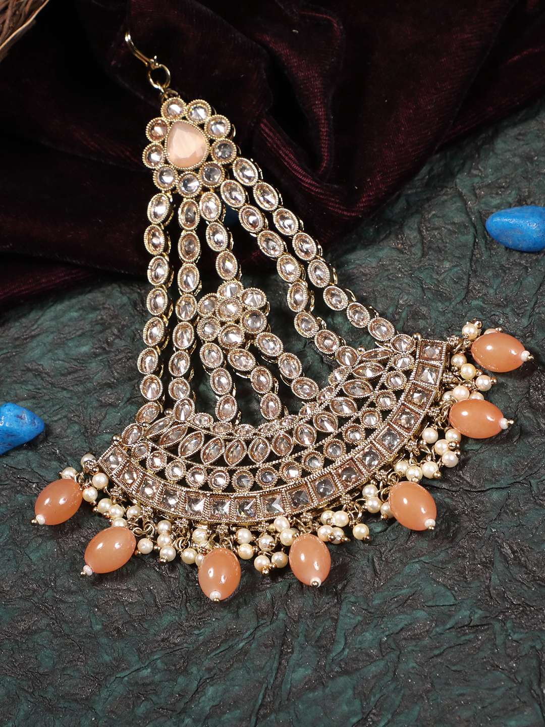 Women 24CT Gold-plated handcrafted jhumar passa has Orange stone-studded and beaded droplet detailing ,Jhumar Passa secured with a hook closure,Our Gold plating is long lasting and non allergic to skin.