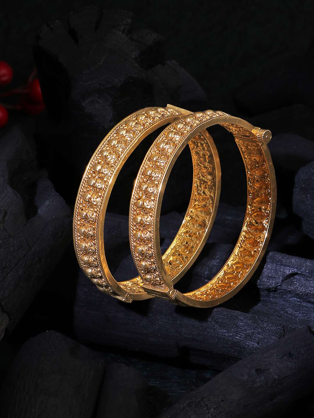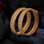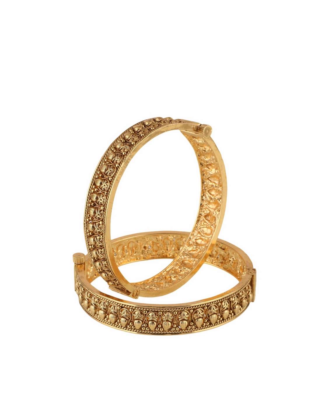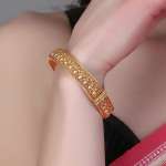 Women Gold-Plated Pearl-Beaded Flower Temple Bangles. Our gold plating is long lasting and non allergic to skin.