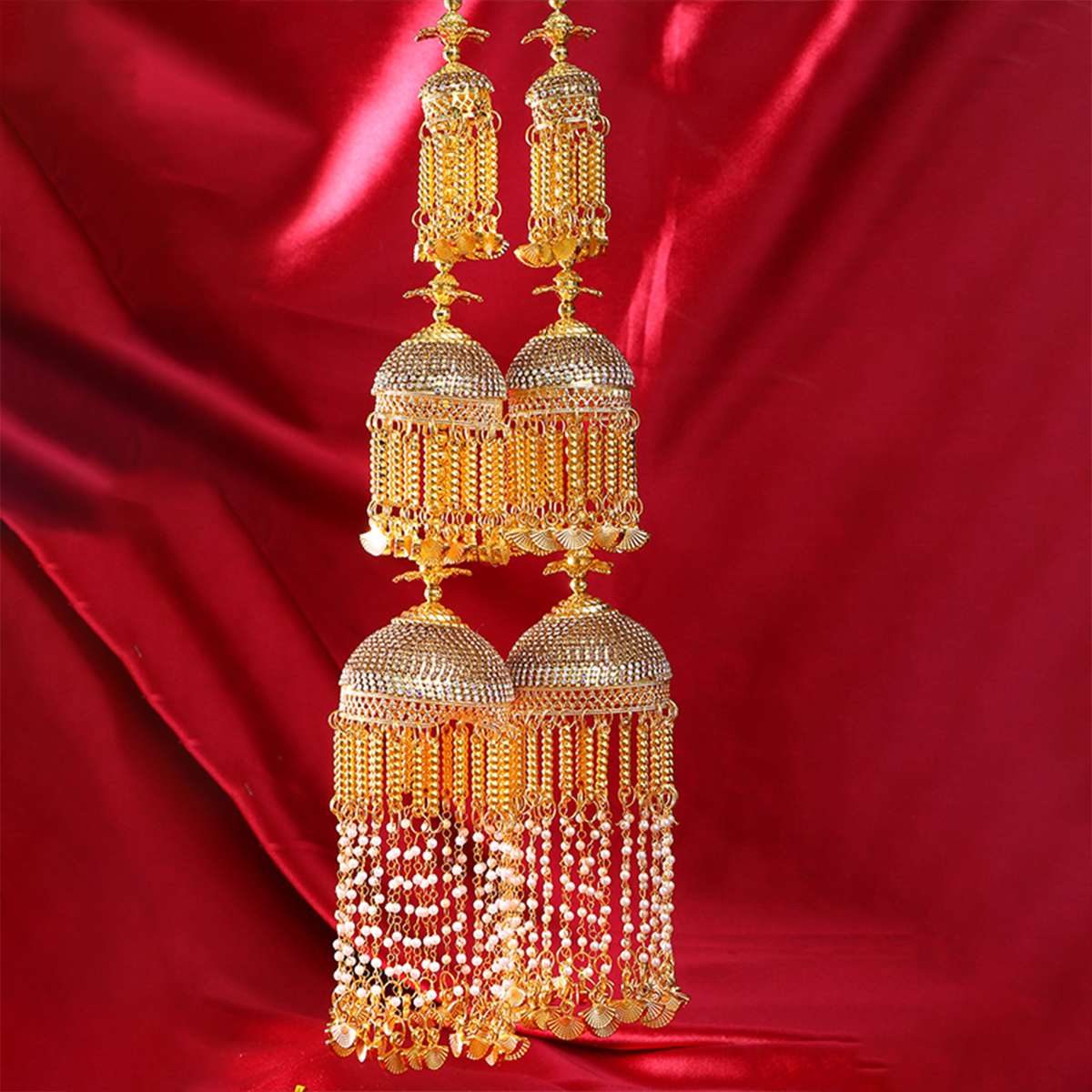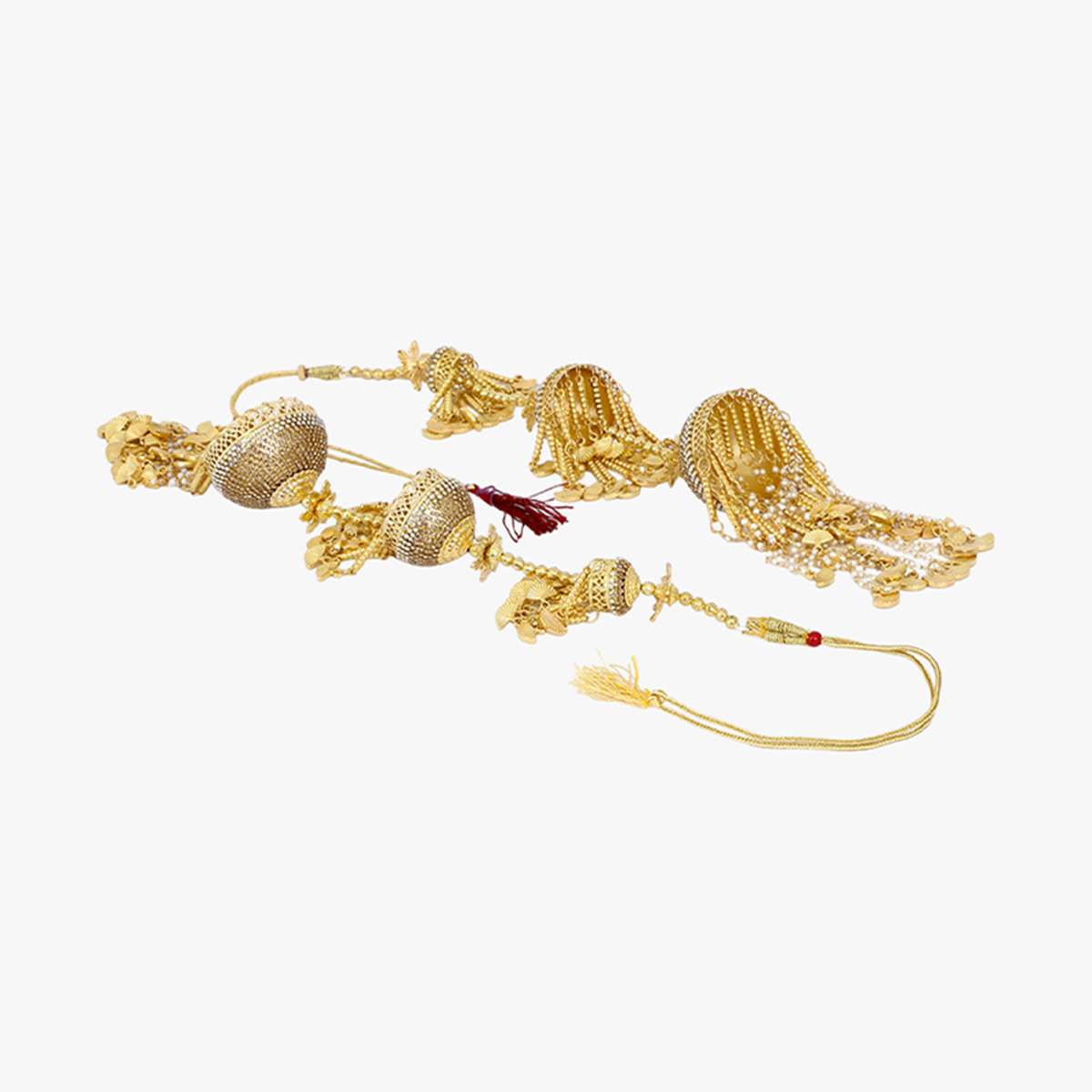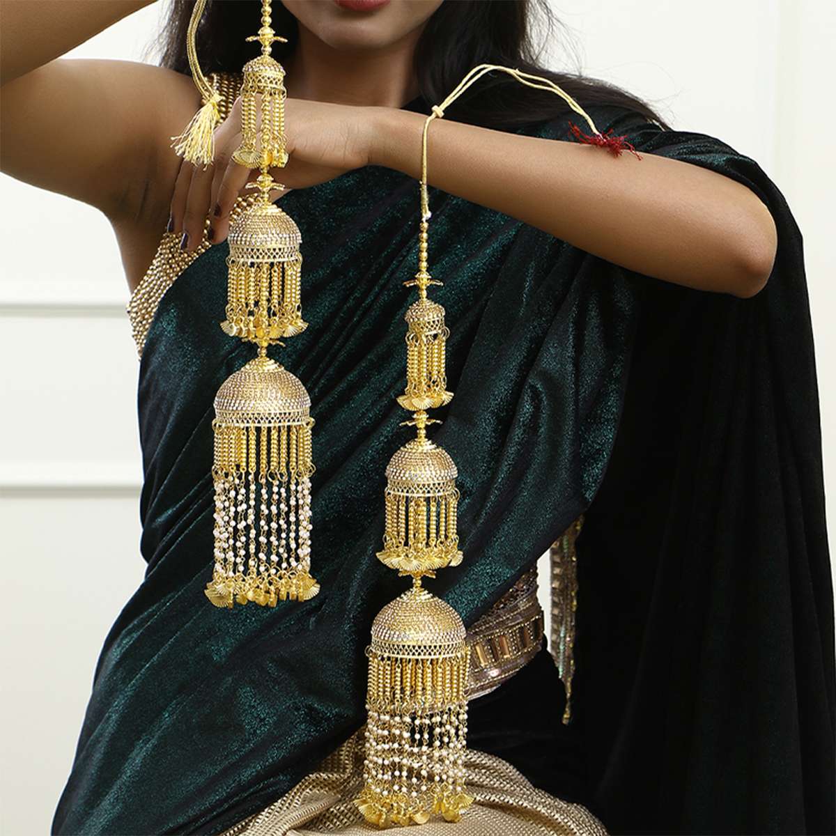 Upgrade your jewellery collection with this pair of kaleeras by Adwitiya. Made with high-quality material, they feature gold-plating. Style them with a lehenga on your special day to look stunning as ever.