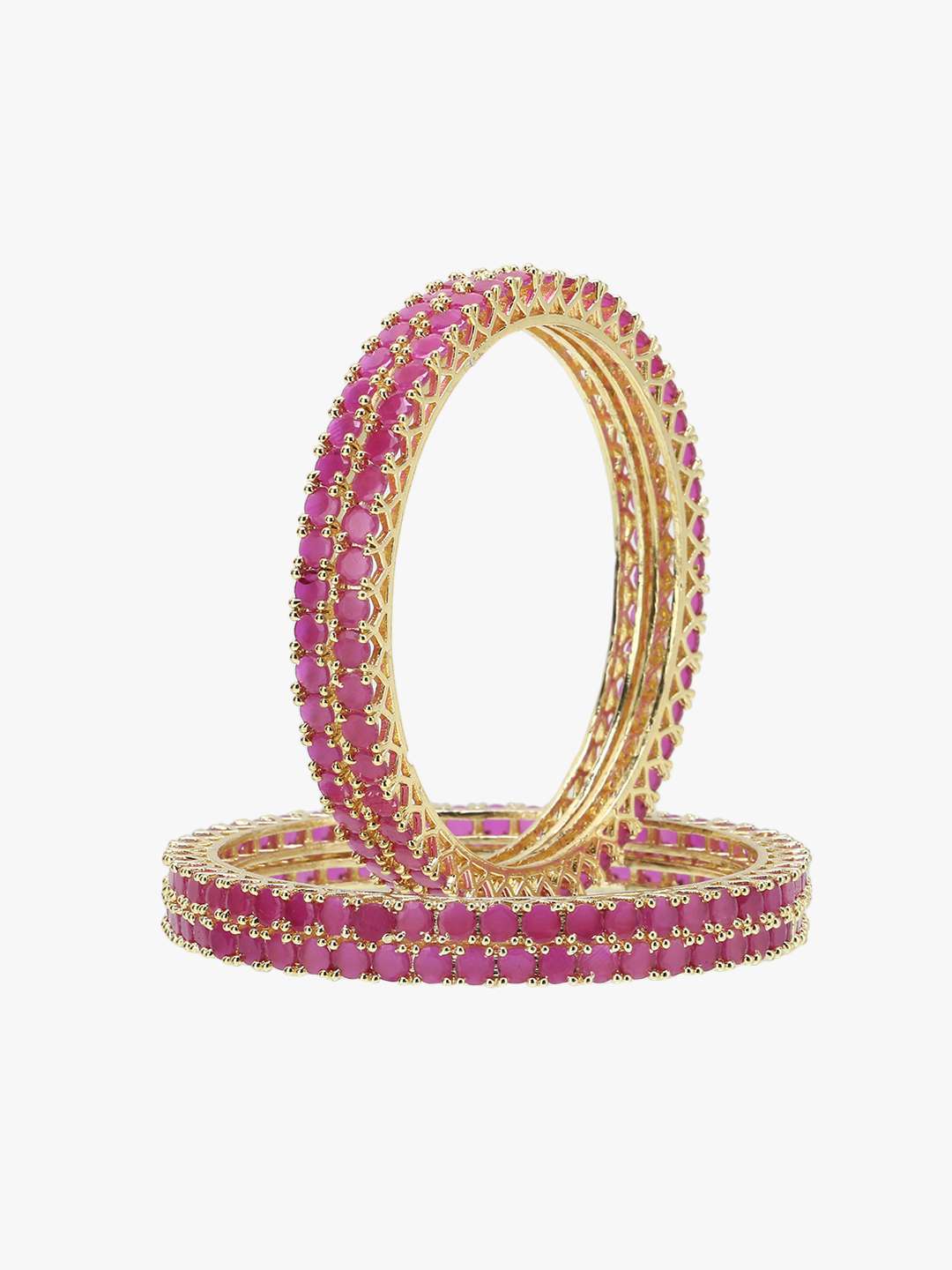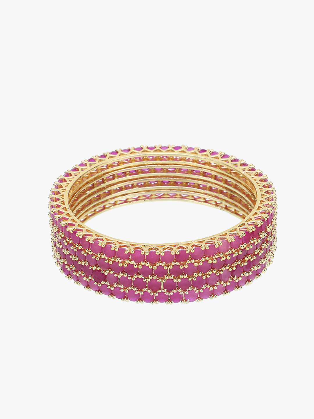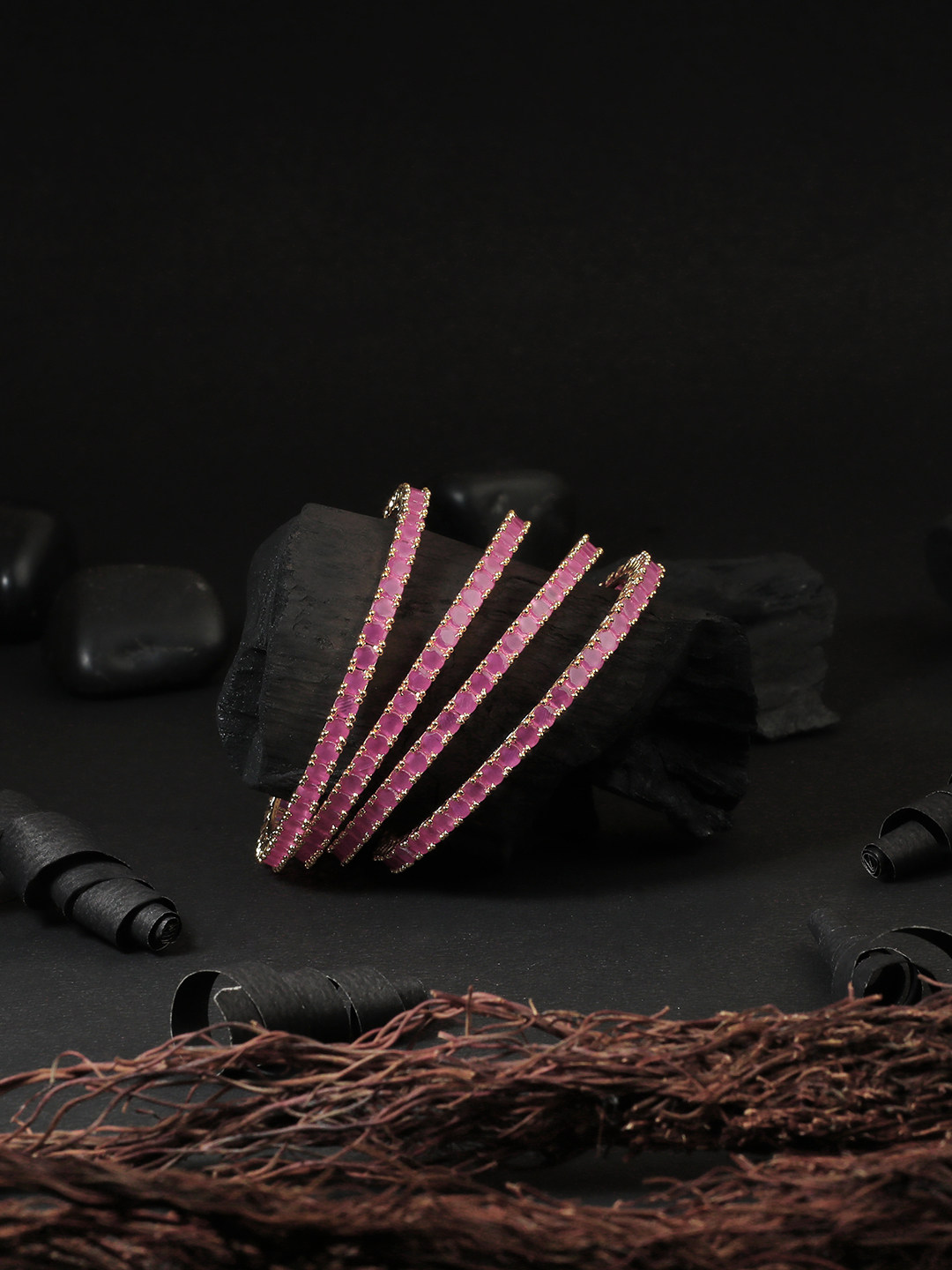 Set of Four 24CT gold-plated Stone-studded handcrafted bangles, each has an intricate textured pattern,our gold plating is long lasting and non allergic to skin.