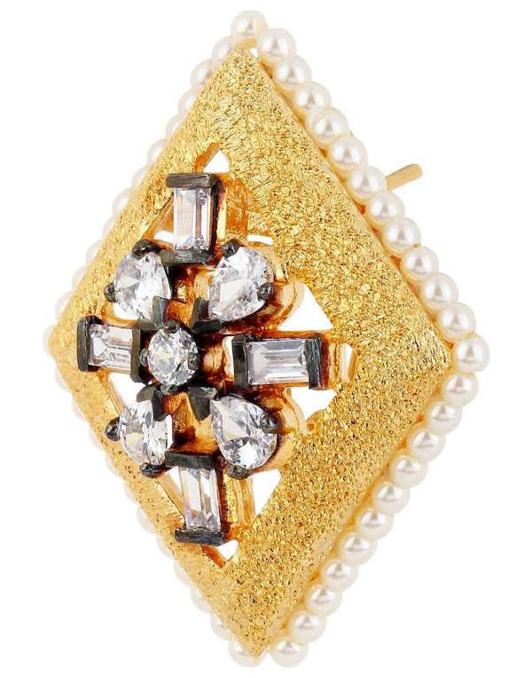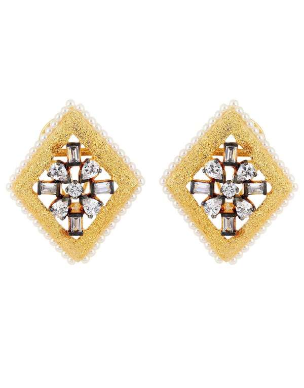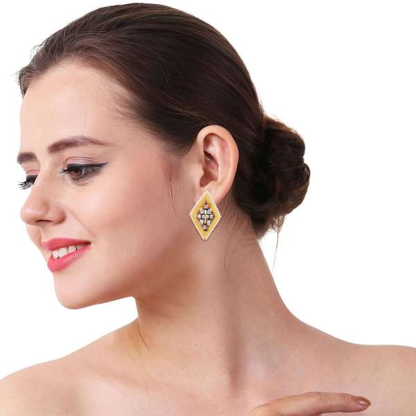 Women 24CT Gold Plated Handcrafted Rectangle Drop Earing ,Gold-plated,and has artificial stones,Secured with a Post back closure.