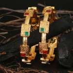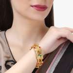 Women Set of 2 24CT Gold-plated Pink and Green Stone -Studded handcrafted bangles, has enamelled detail each has intricately textured detailing,our Gold plating is long lasting and non allergic to skin.