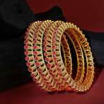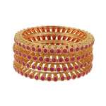 Women Gold-Plated Red Stone-Studded Bangles. Our gold plating is long lasting and non allergic to skin.