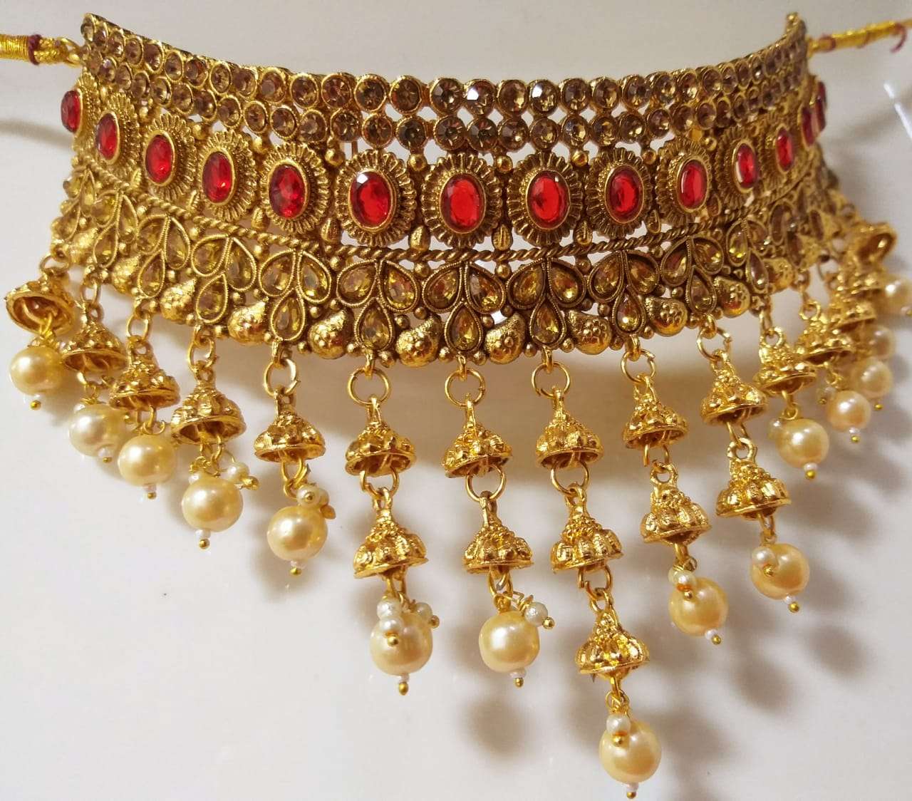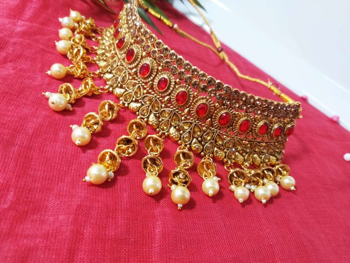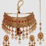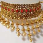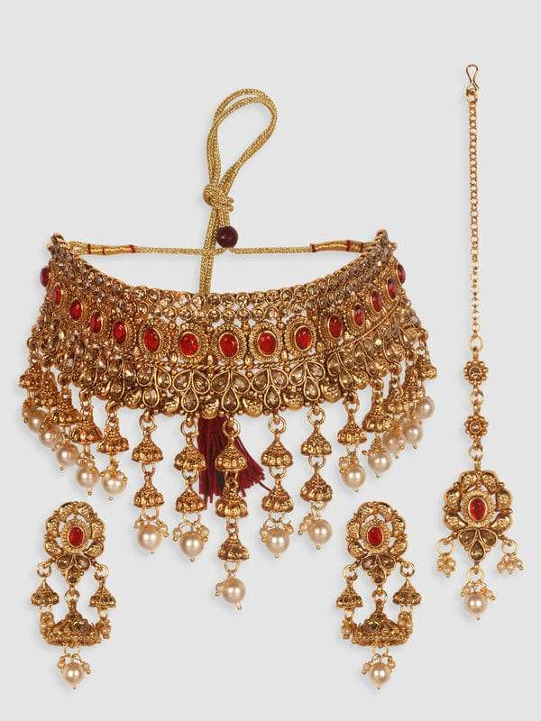 Gold-Plated Red & White Kundan-Studded & Pearl Beaded Vilandi Jewellery Set