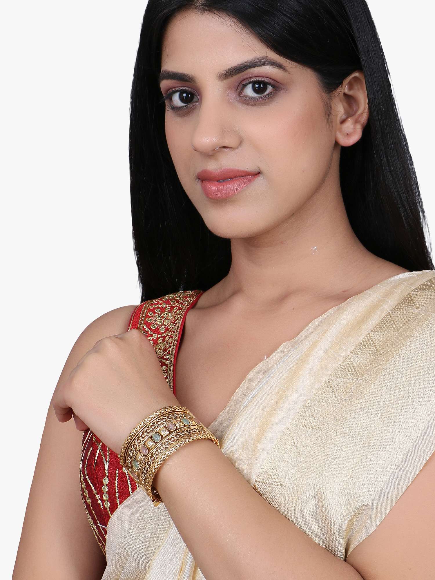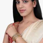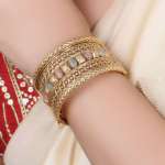 Gold Plated Stone Studded Broad Bangles. Our gold plating is long lasting and non allergic to skin.