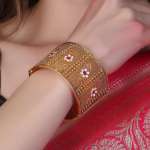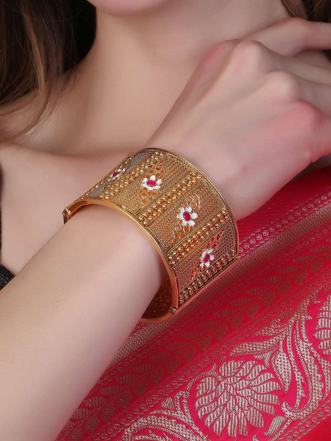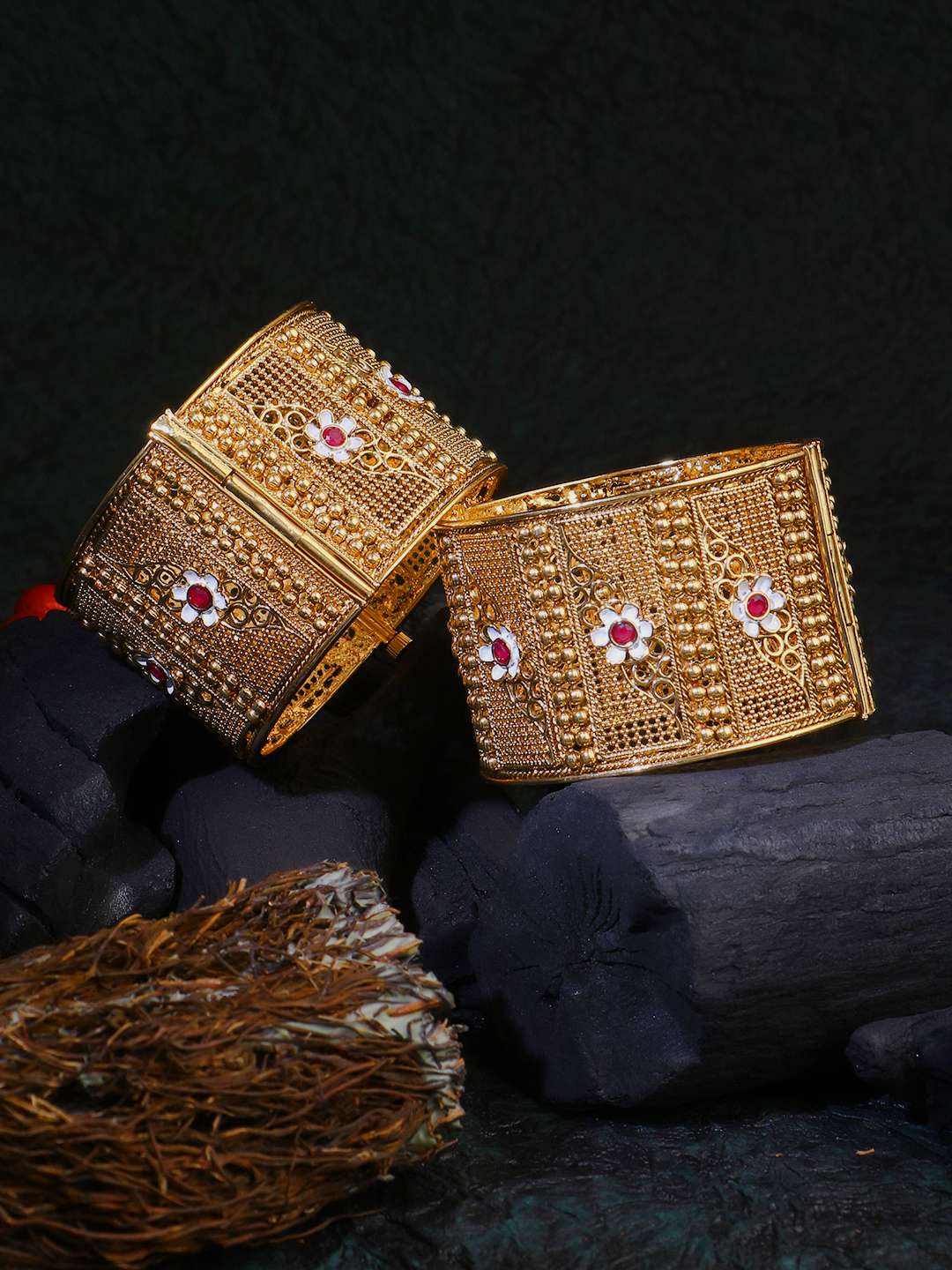 Women Gold-Plated Stone-Studded Pearl-Beaded Bangles. Our gold plating is long lasting and non allergic to skin.