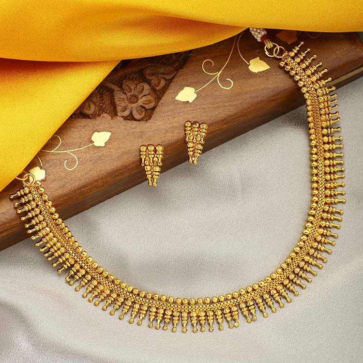 Gold Plated Stylish Party Wear Fancy Choker Necklace Jewellery Set