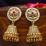 Gold Plated Traditional Stone Pearl Floral Design Jhumkas