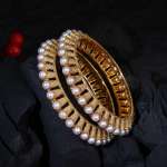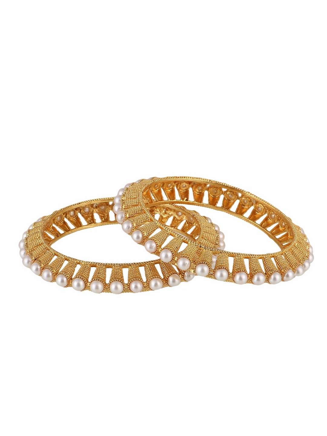 Women Gold-Plated White Pearl-Studded Bangles. Our gold plating is long lasting and non allergic to skin.