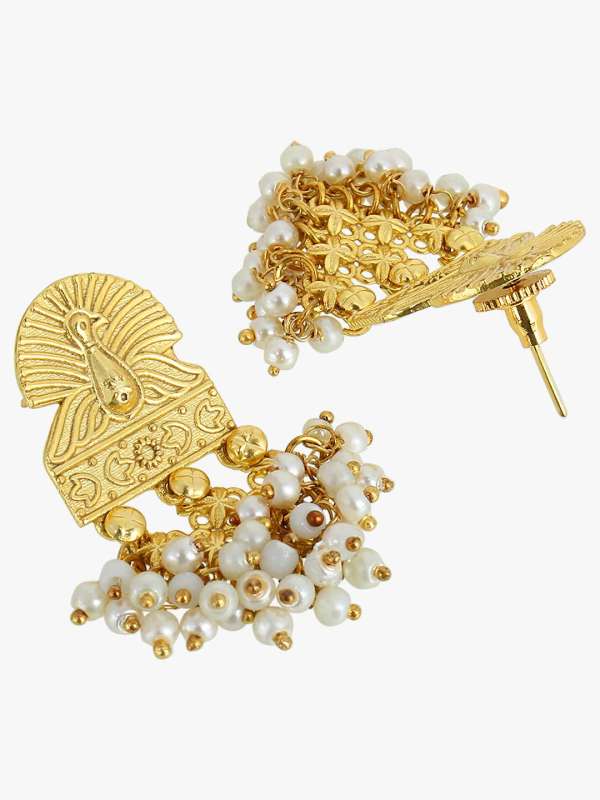 24 CT Women Gold-Plated with White Pearls bird Earing,Gold-plated,and has artificial stones,Secured with a post and back closurBeautiful Looks at One Glance – with Intricate High Polish creates Glamorous Reflections and adds Luxurious Looks