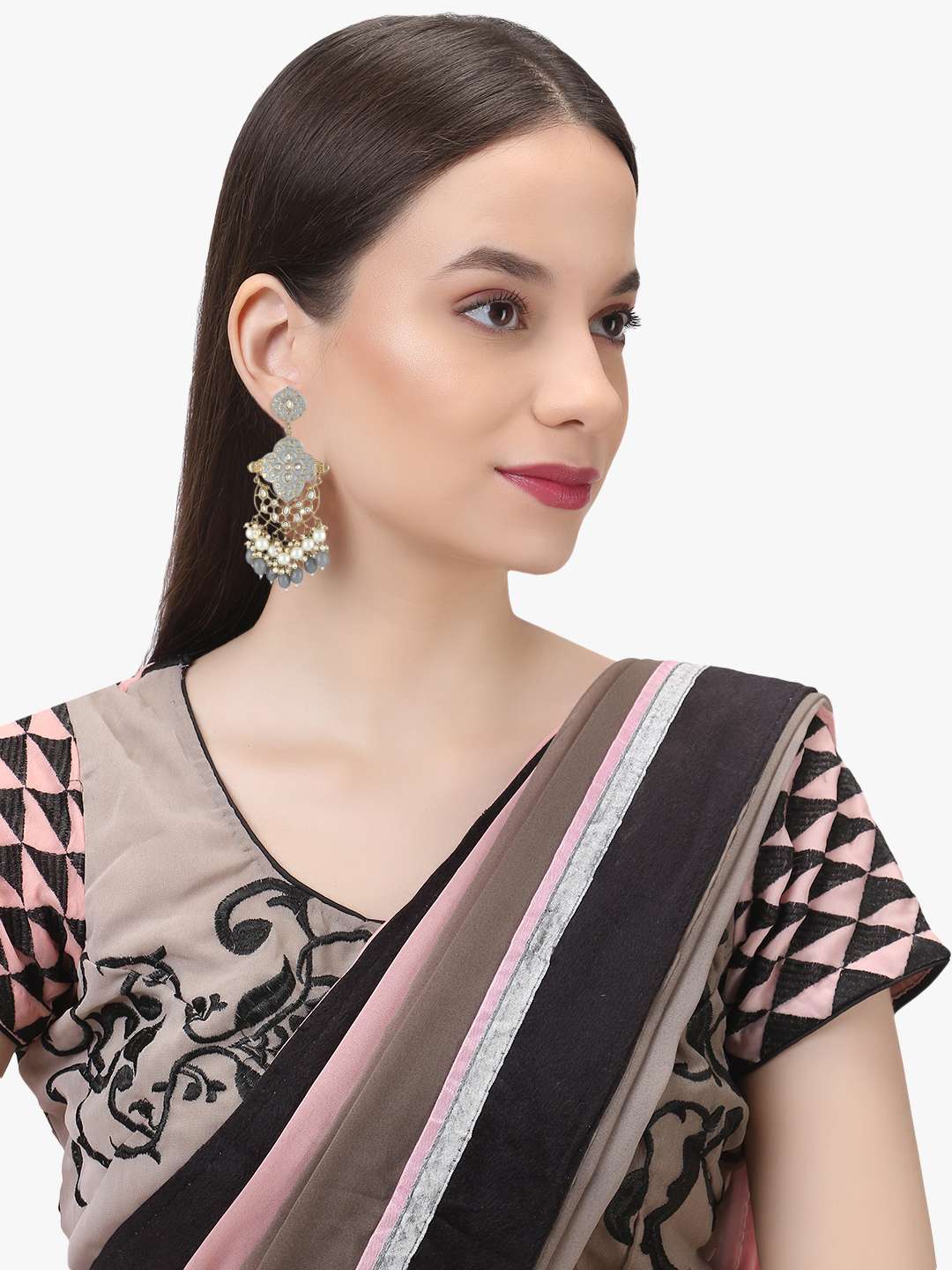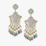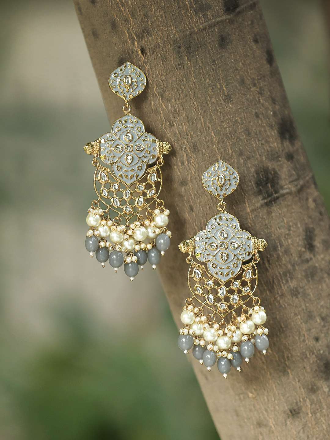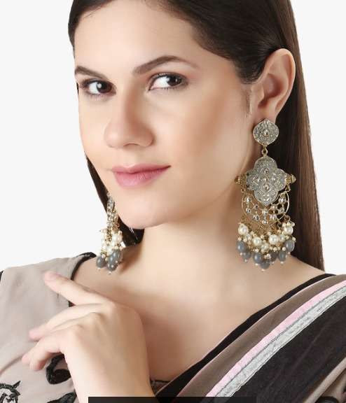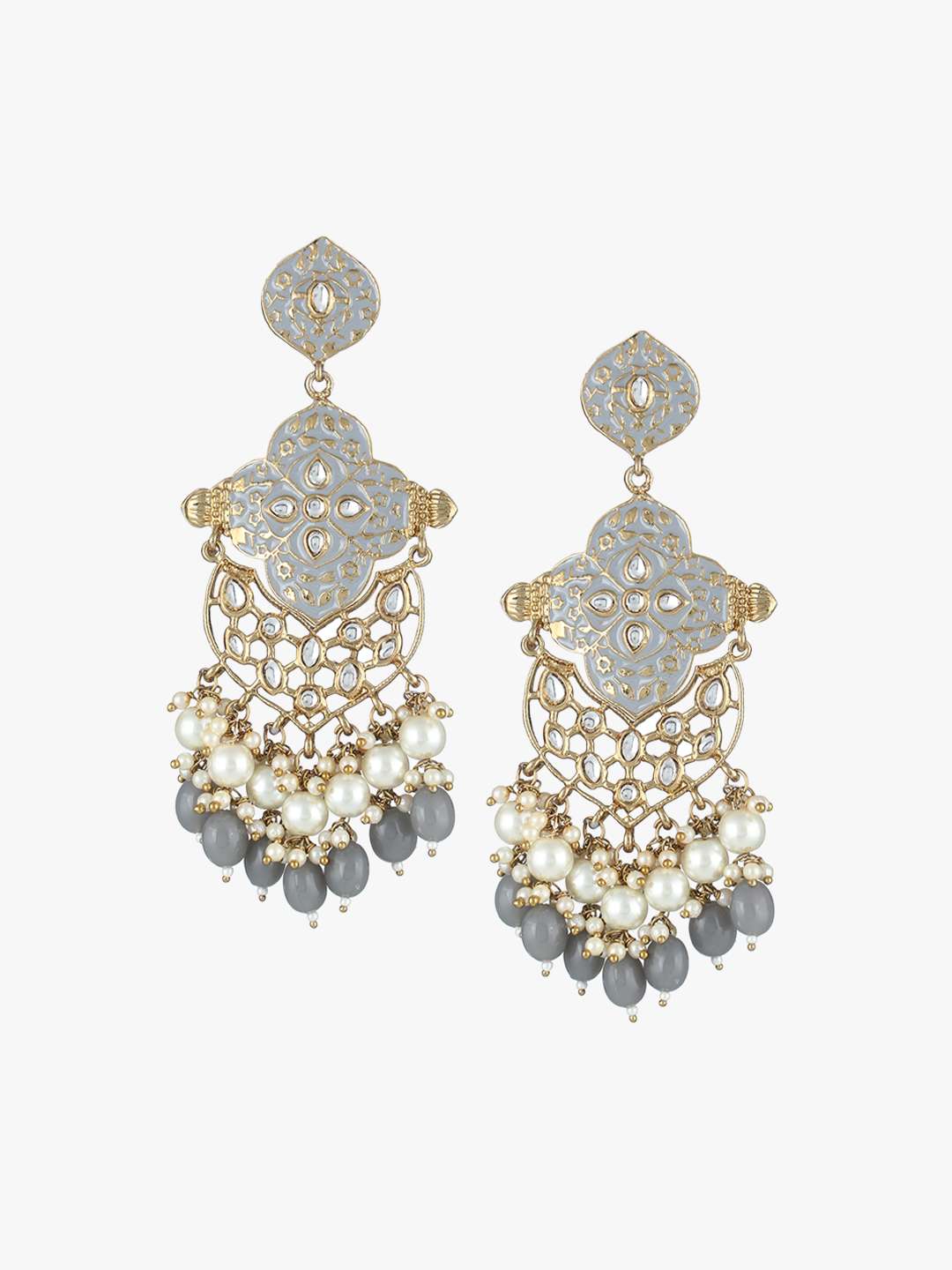Women Gold-Plated Gray Enameld Contemporary Geometric Stone-Studded Drop Earing Gold-plated,our Gold plating is long lasting and non allergic to skin,and has artificial stones,Secured with a post and back closure.