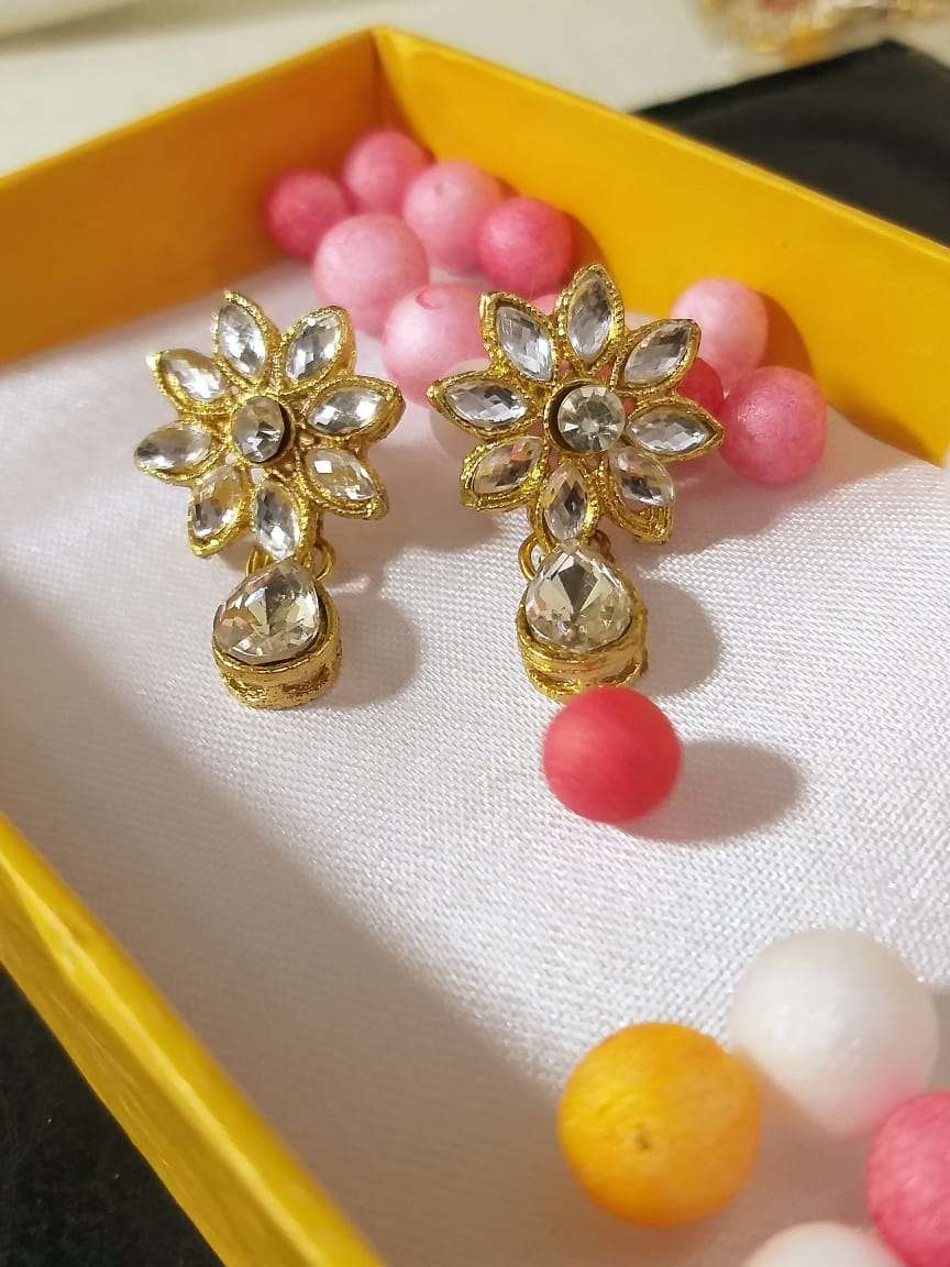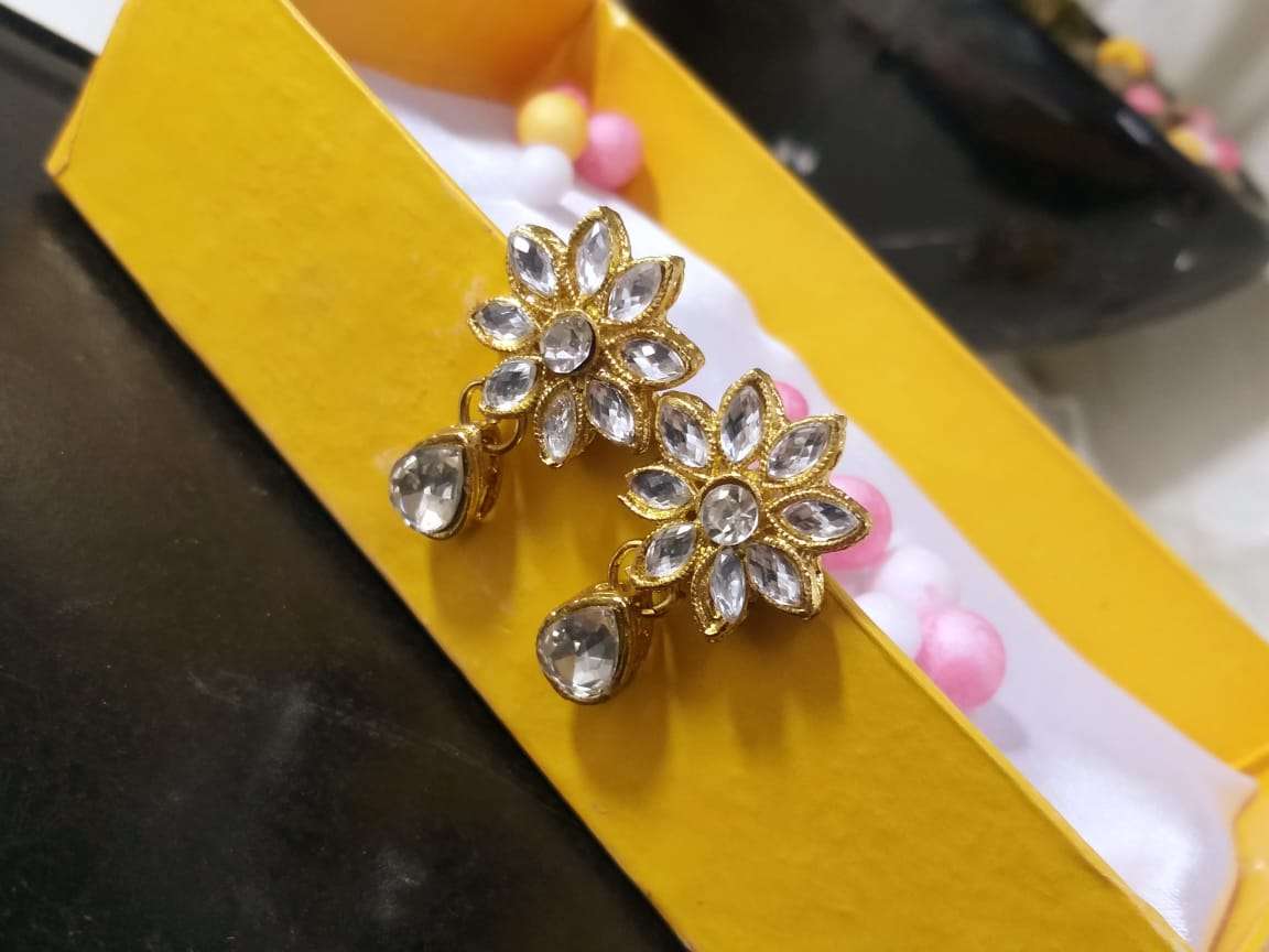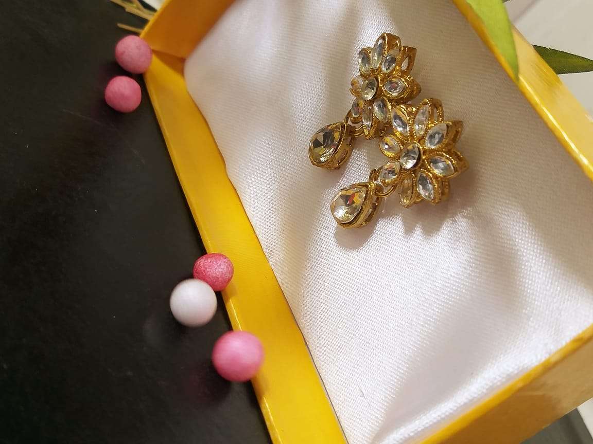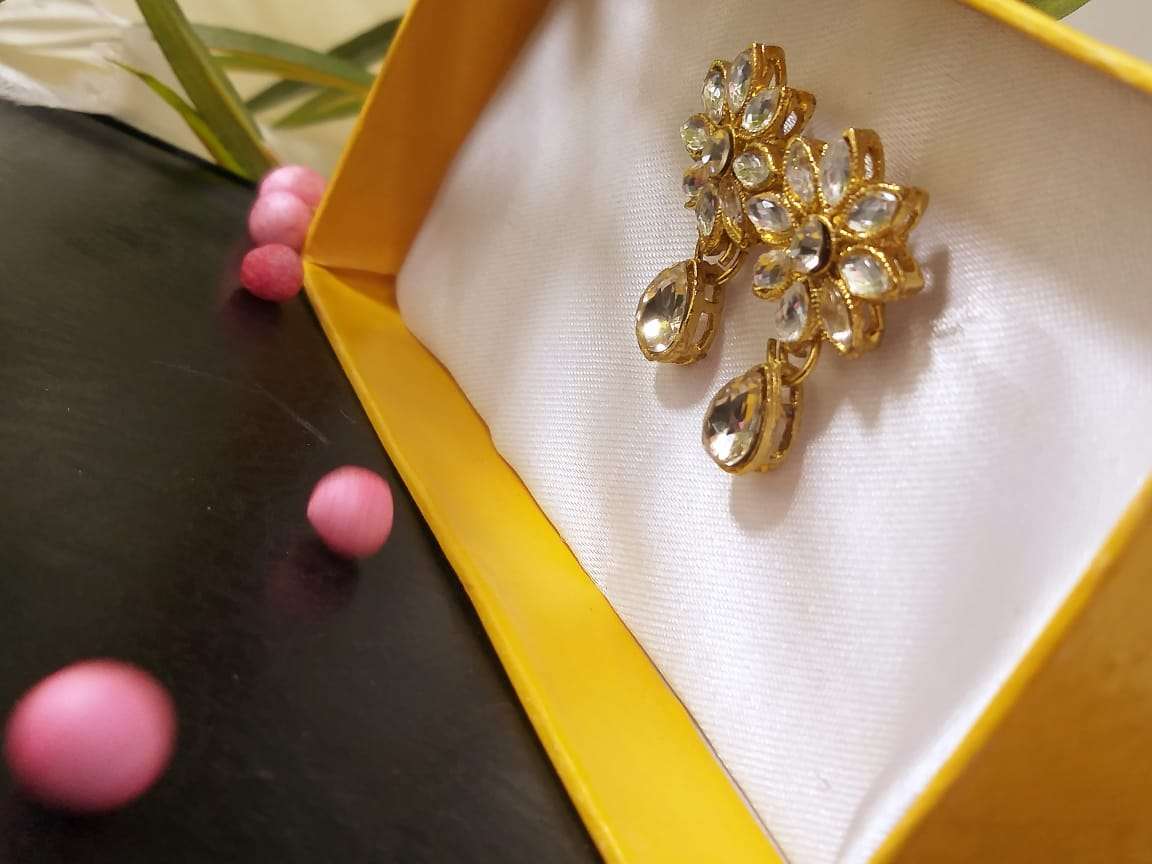 Gold Tone Traditional Kundan And Pearls Earrings