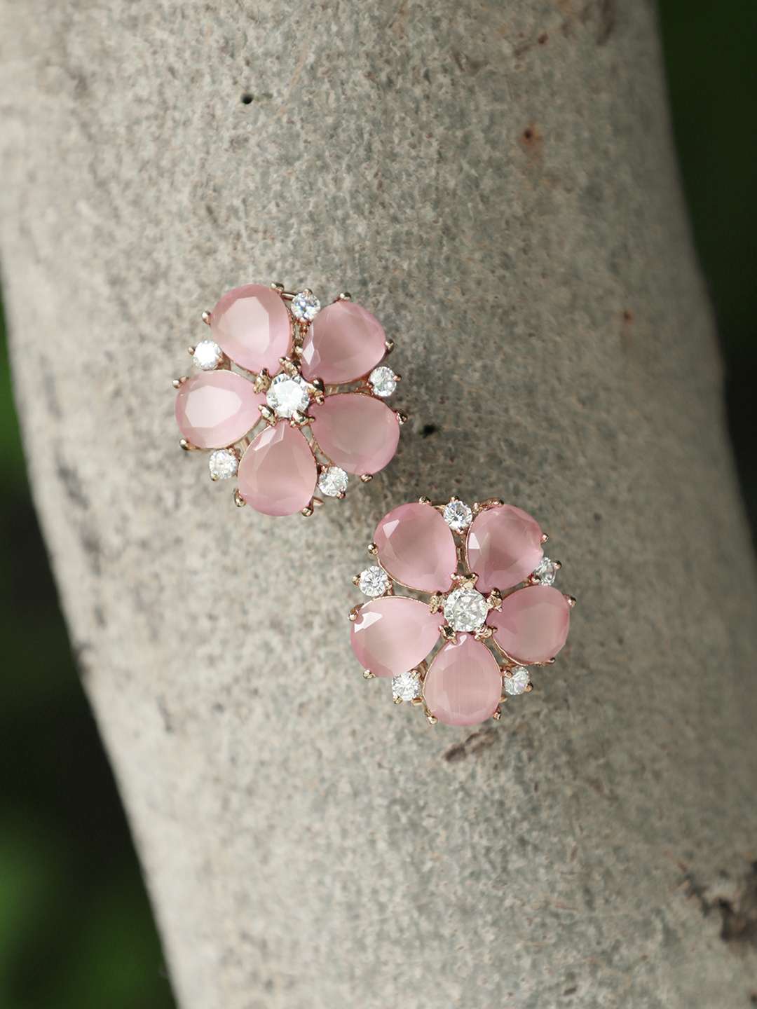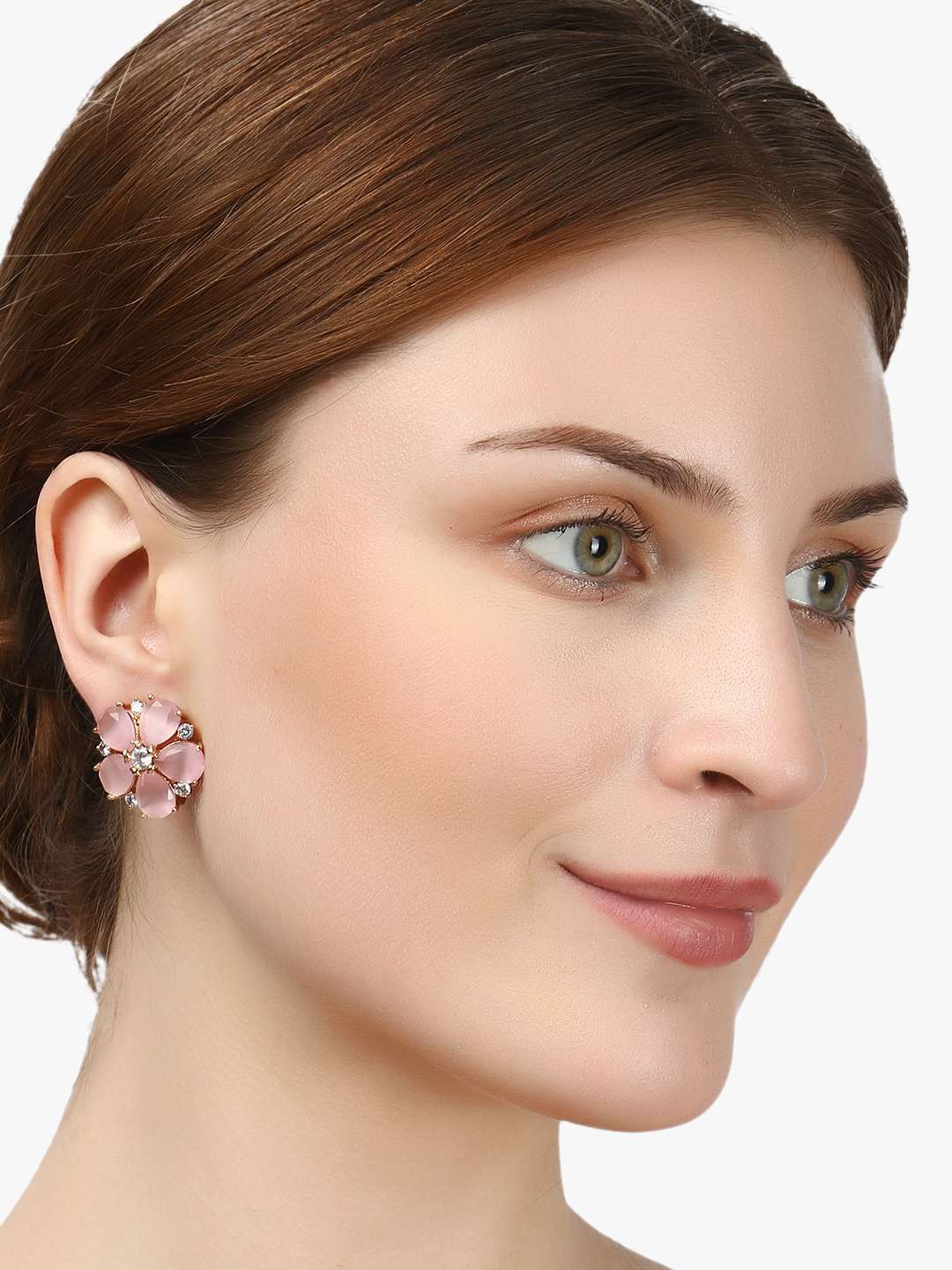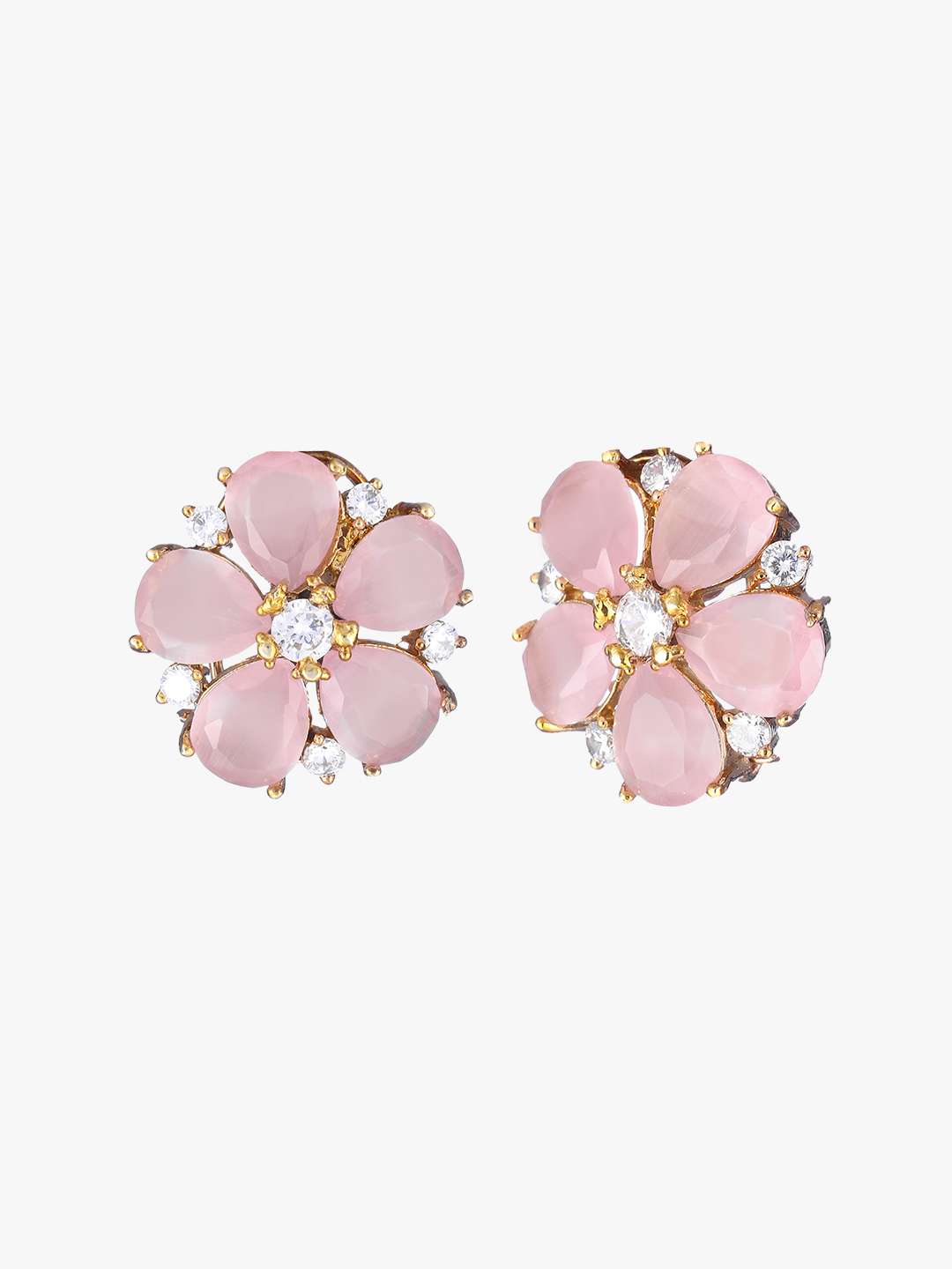 Gold-Toned Dome Shape pink rose Studs,our Gold plating is long lasting and non allergic to skin.
