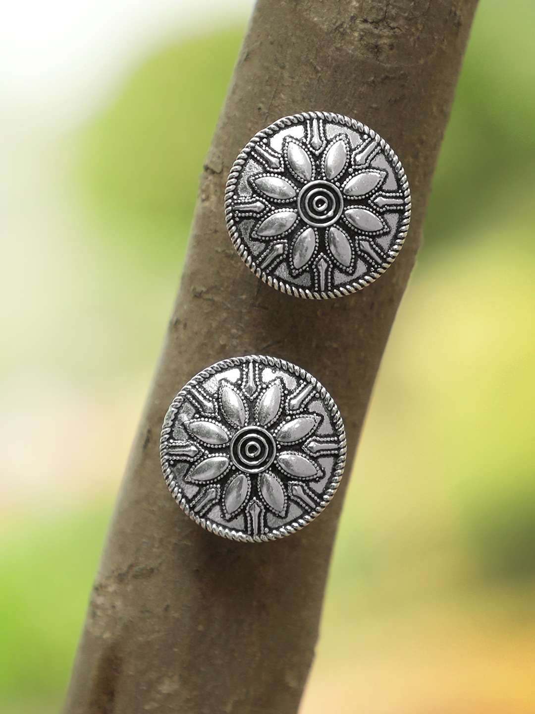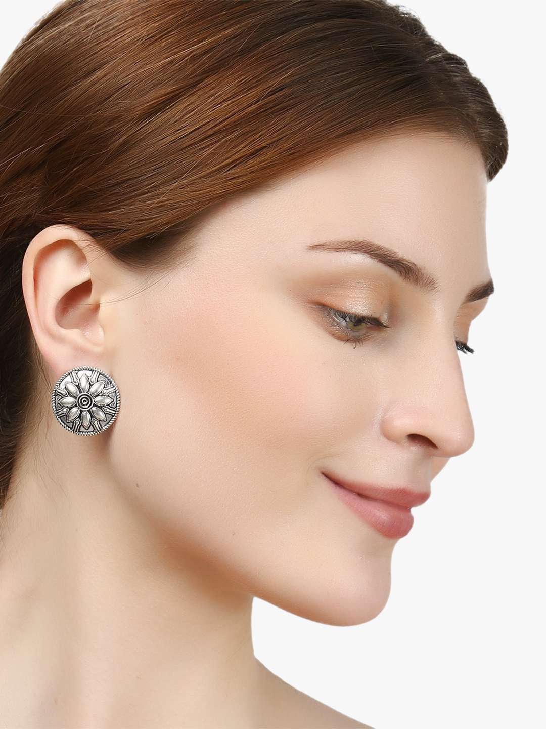 Look Like Silver Circular Shaped Studs,our Silver plating is long lasting and non allergic to skin,and has artificial stones,Secured with a Post-Back closure.