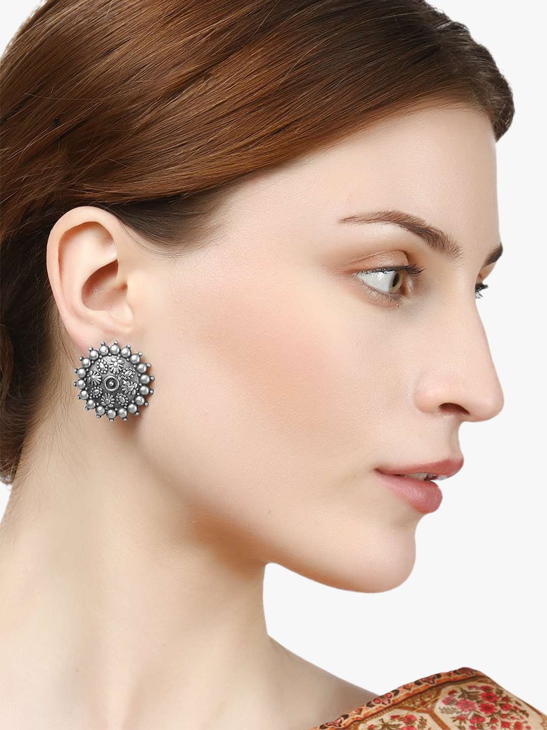 Silver-Toned Circular Earrings, silver-plated, Secured with a post and back