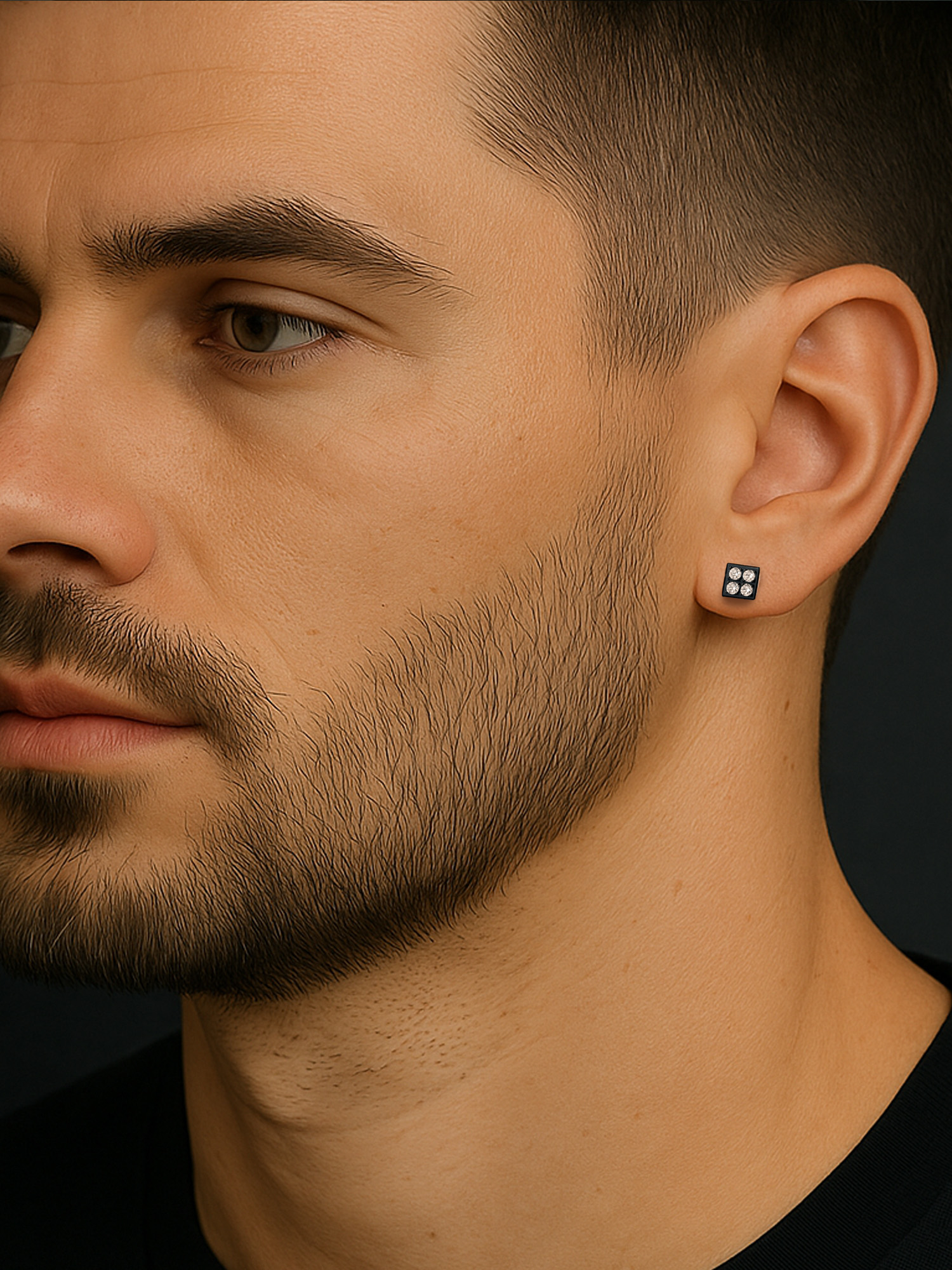 Add a bold edge to your style with these sleek square-shaped stud earrings for men. Crafted from durable black alloy, each stud features a finely set stone that adds a touch of subtle sophistication. Perfect for everyday wear or a night out, these earrings combine modern design with timeless appeal