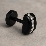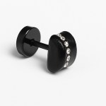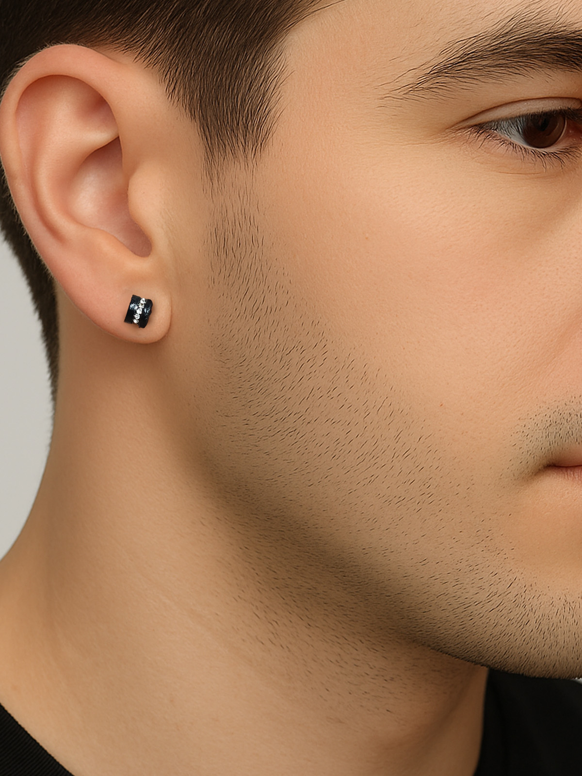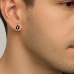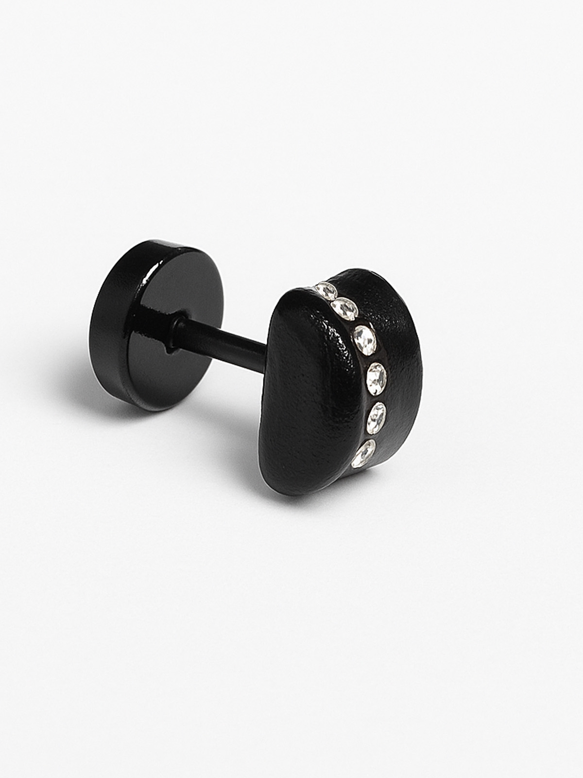 Men Black Stone Studded Half Circle Alloy Stud Earrings