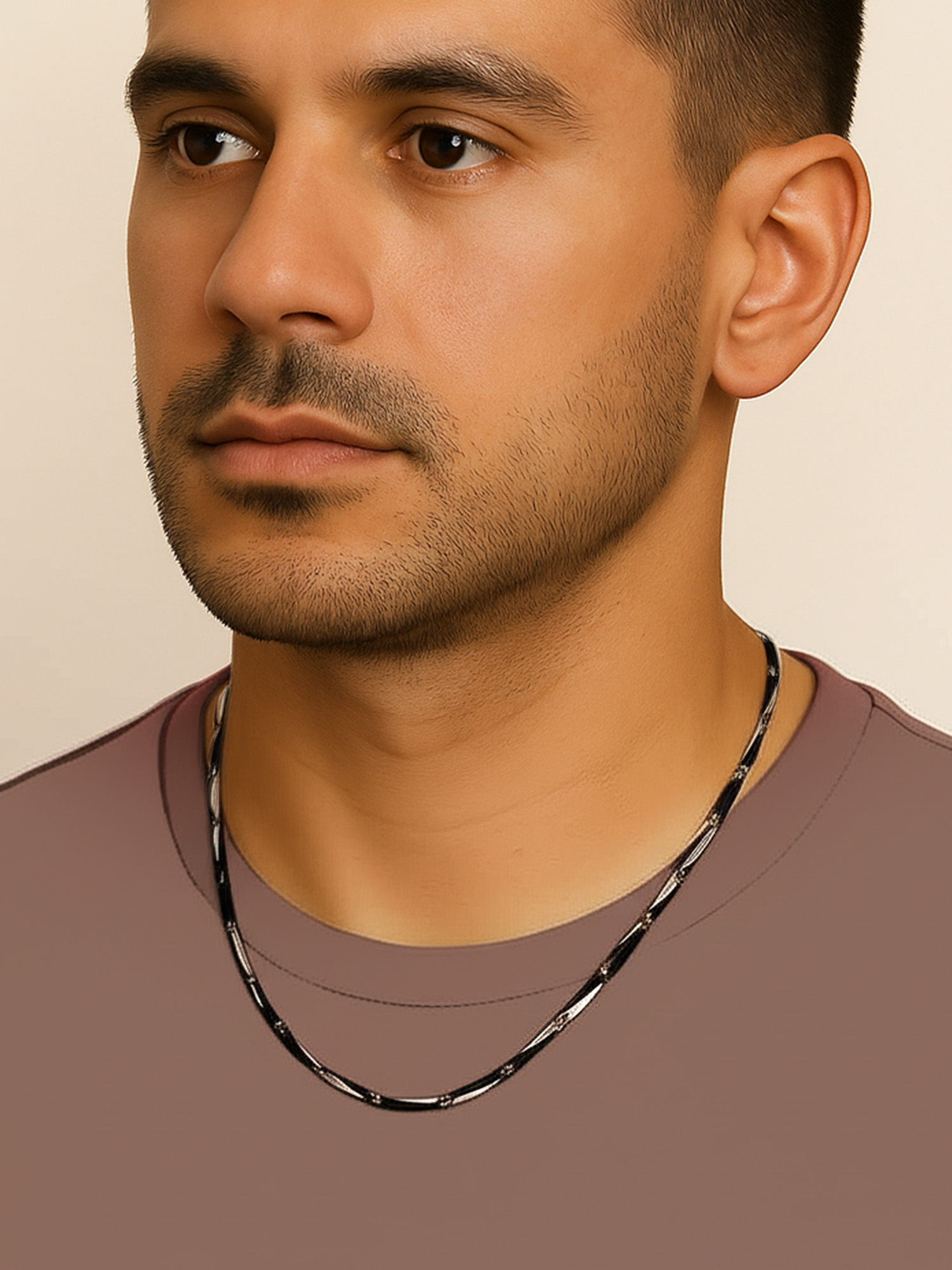 Designed with a structured, collar-style layout that adds a sleek, masculine edge to any look.