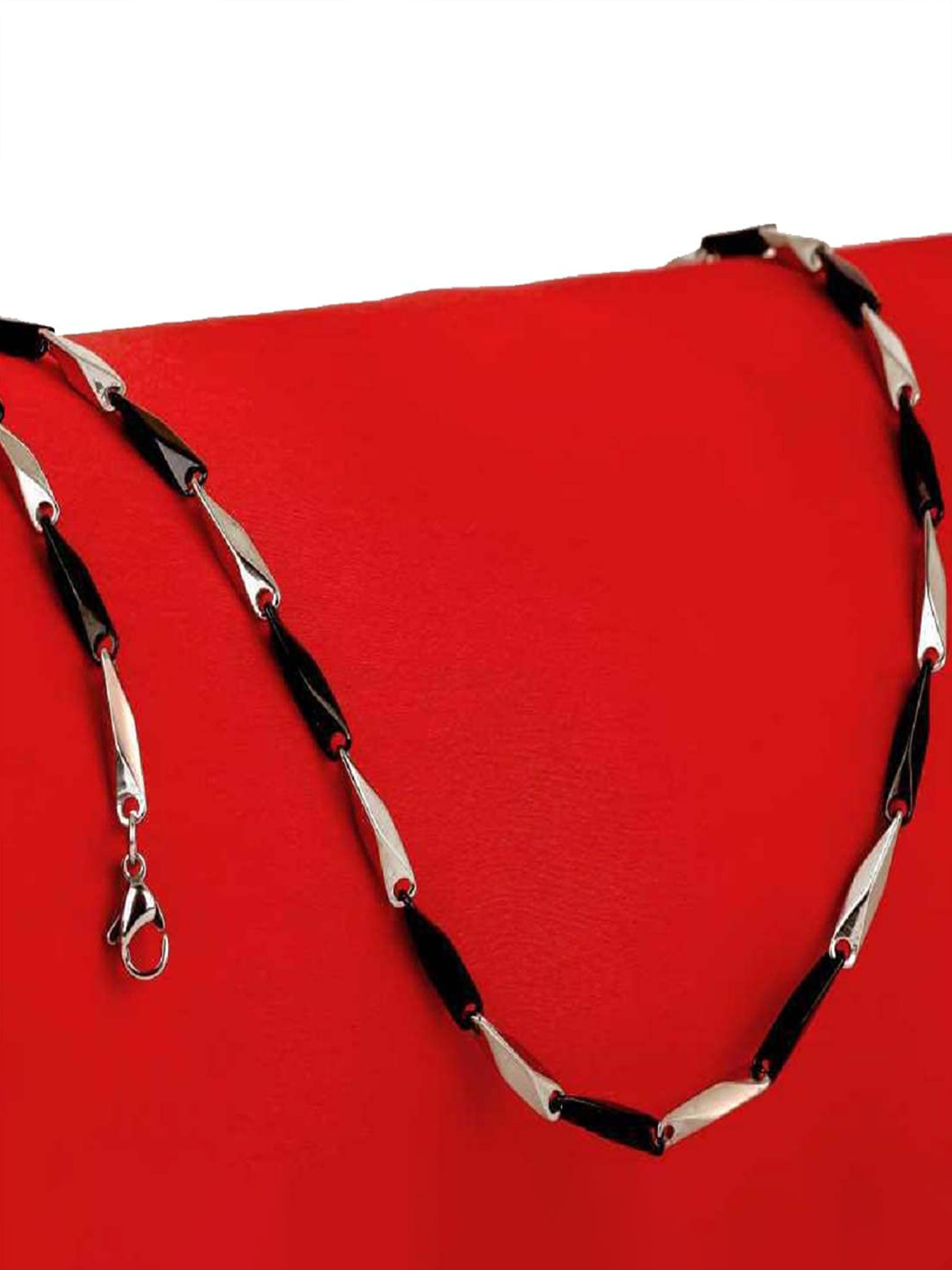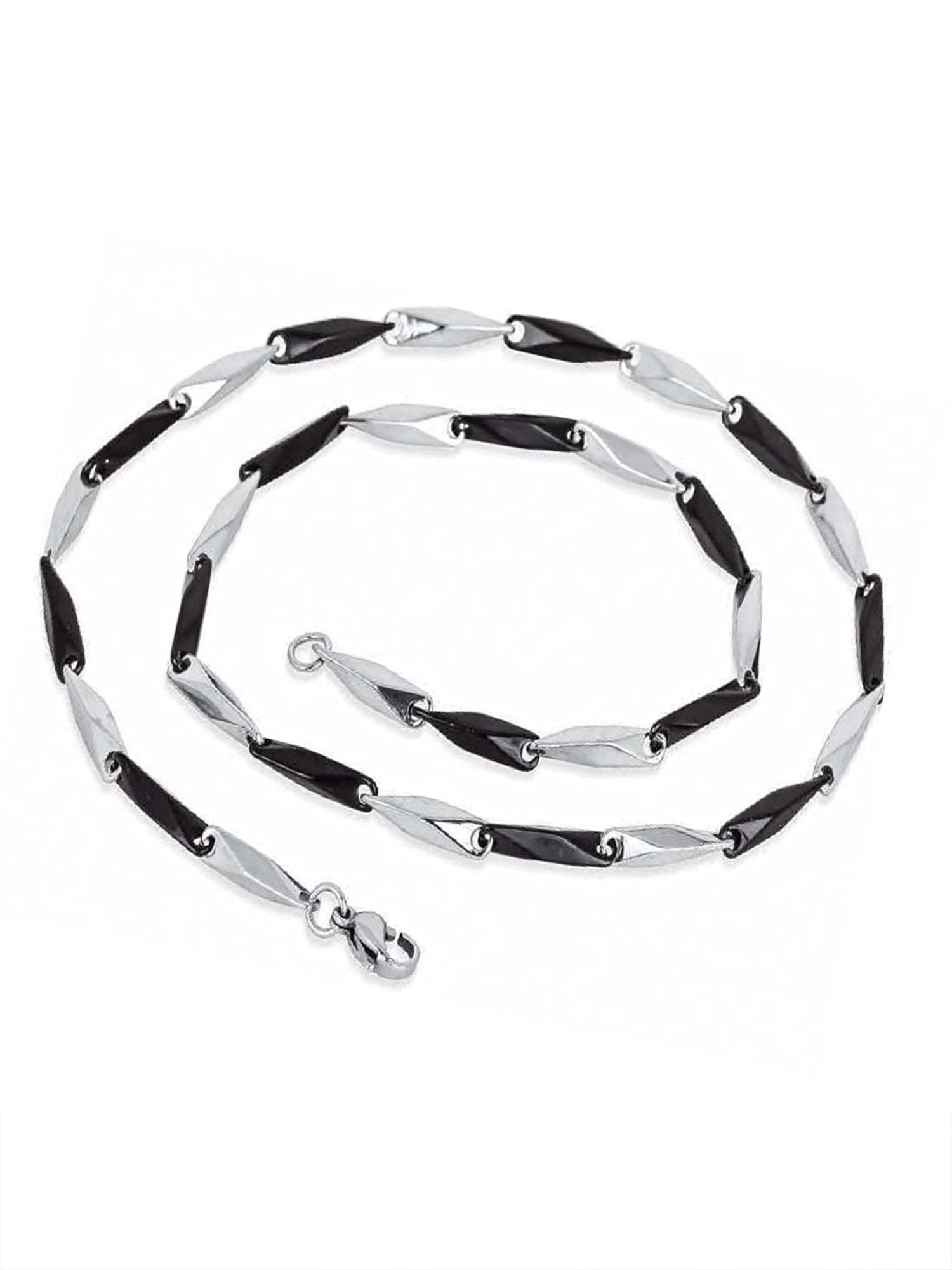 Features alternating silver and black block links for a high-contrast, eye-catching design.