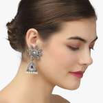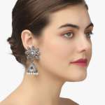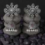 Women Oxidised Silver-Plated Flower Shape Jhumkas Copper Jhumki Earring, Silver-plated,our Silver plating is long lasting and non allergic to skin,and has artificial stones,Secured with a post and back closure.