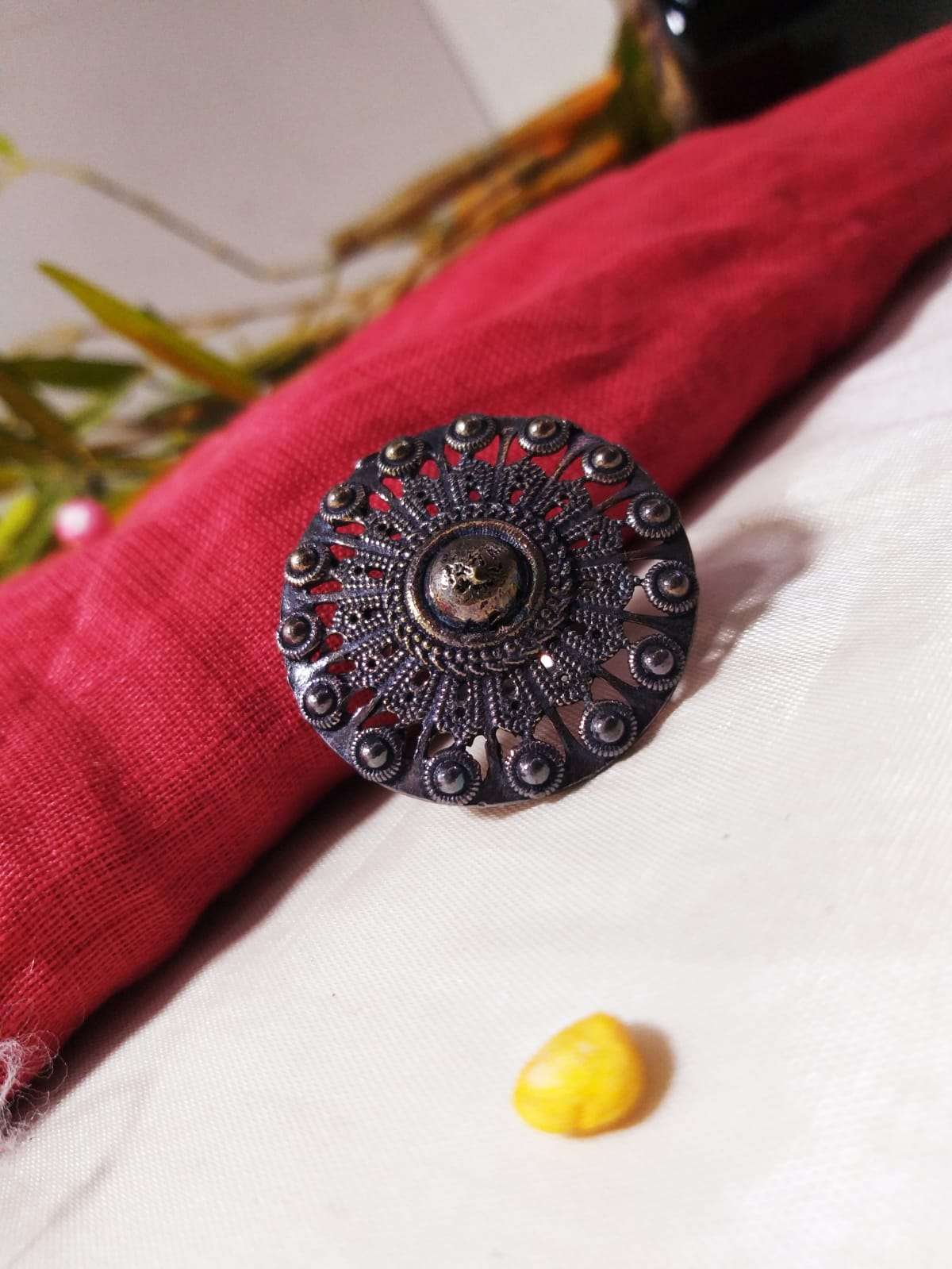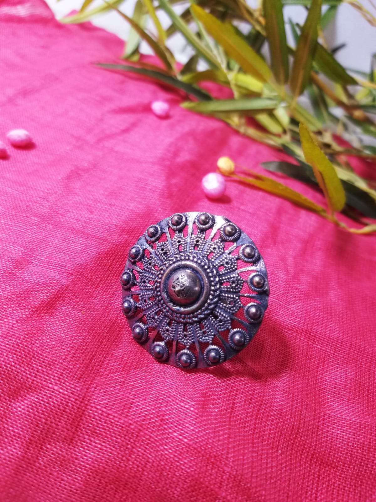 OXIDIZED SILVER-TONED BEADED FINGER RING OR WOMEN