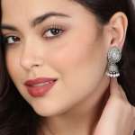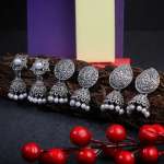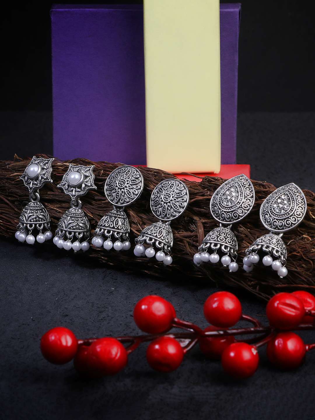 Combo Set of 3 Earrings Silver-Plated jhumki. Our Silver plating is long lasting and non allergic to skin,and has artificial stones,Secured with a fraction Back closure.