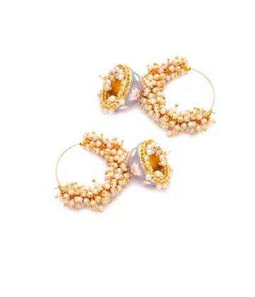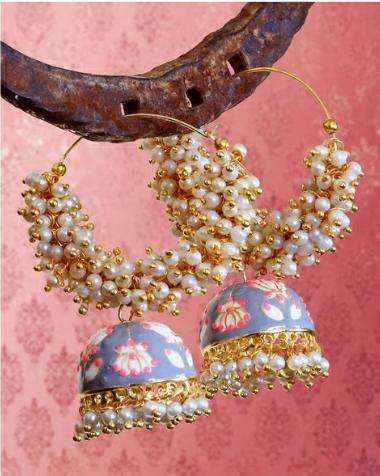 Pearl Enameled jhumka Earrings with Bali Colour